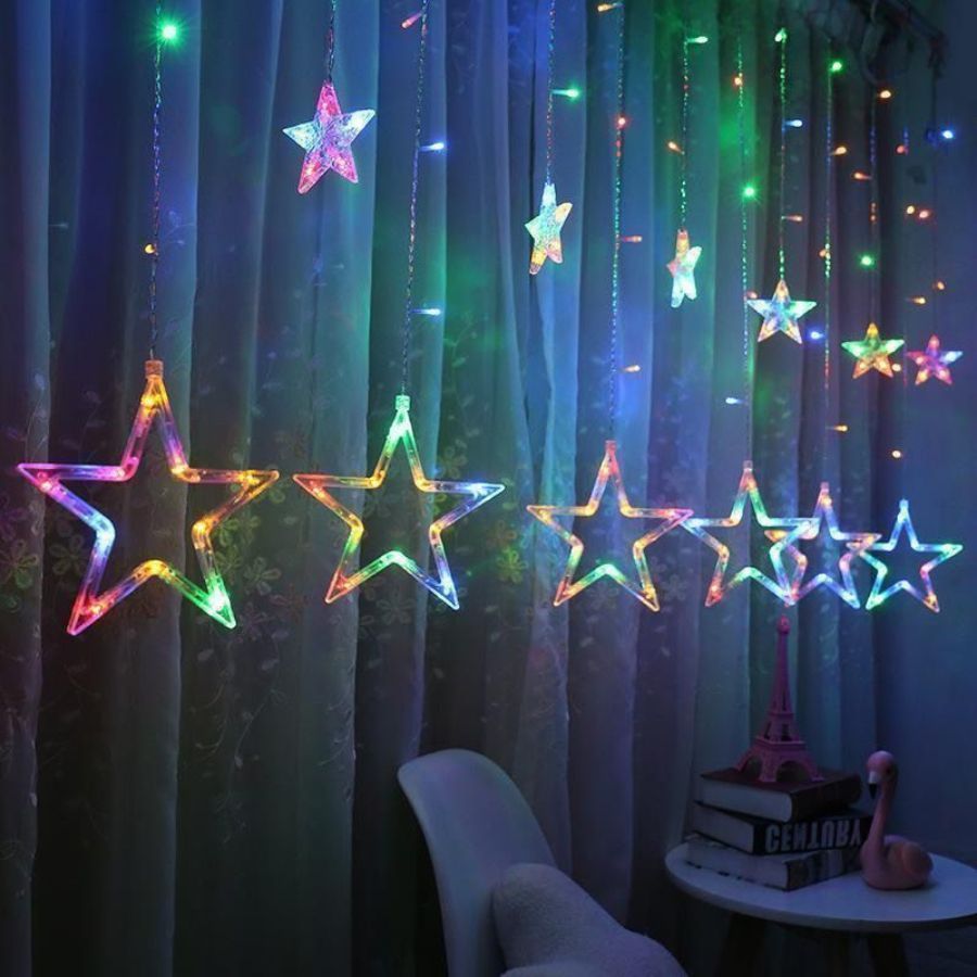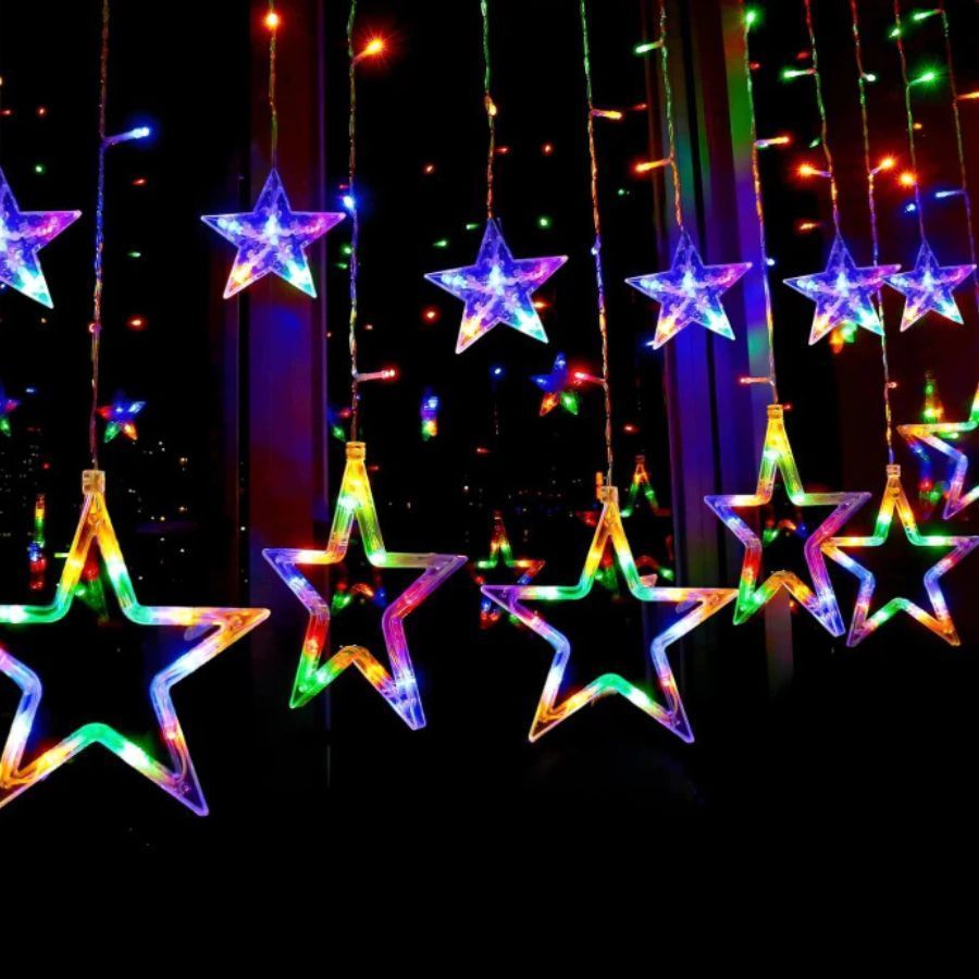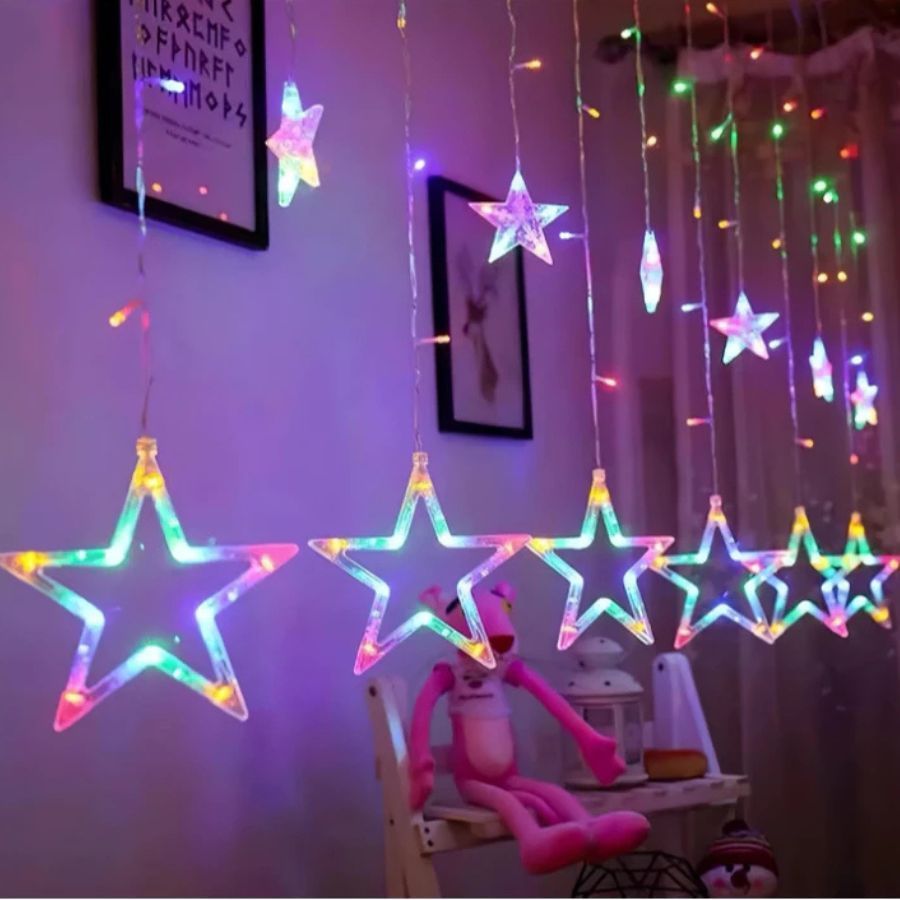 Cascata 2,5 Metros 138 Leds Bivolt 8 Funções Colorido Ou Warm Estrela Na Ponta Conector M/F