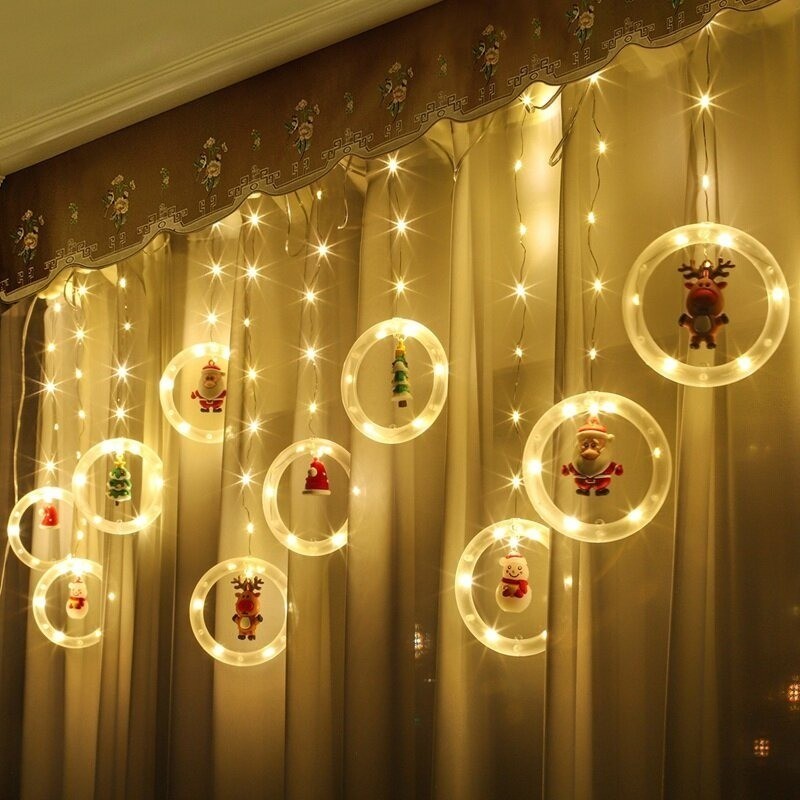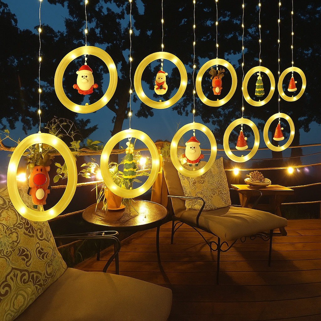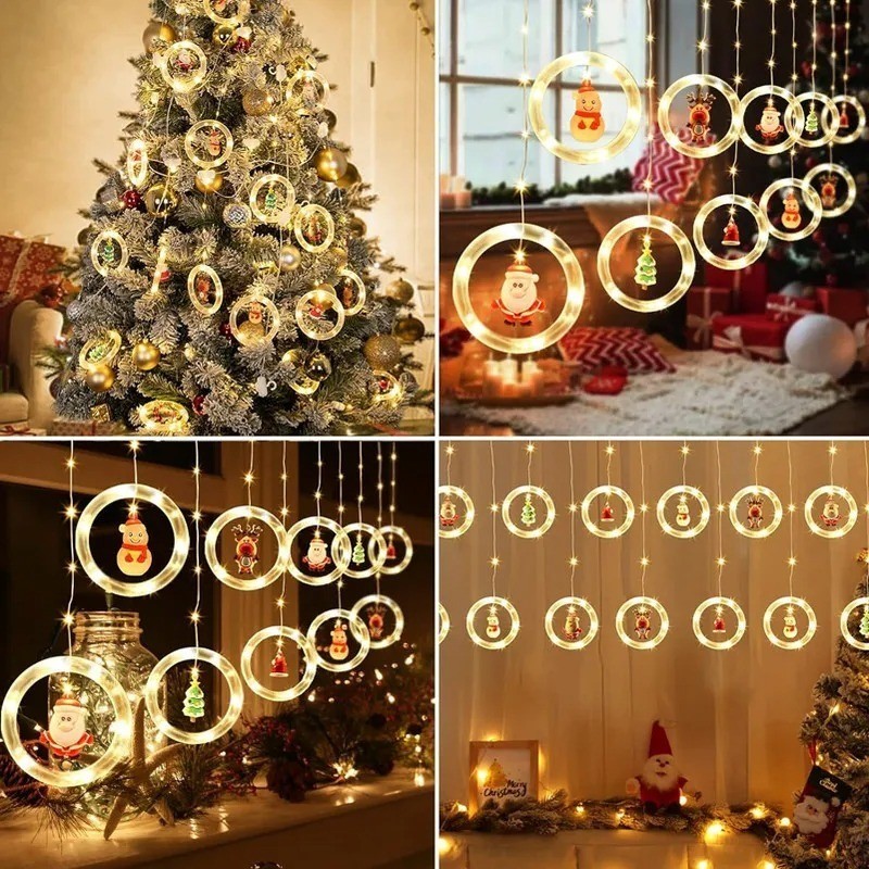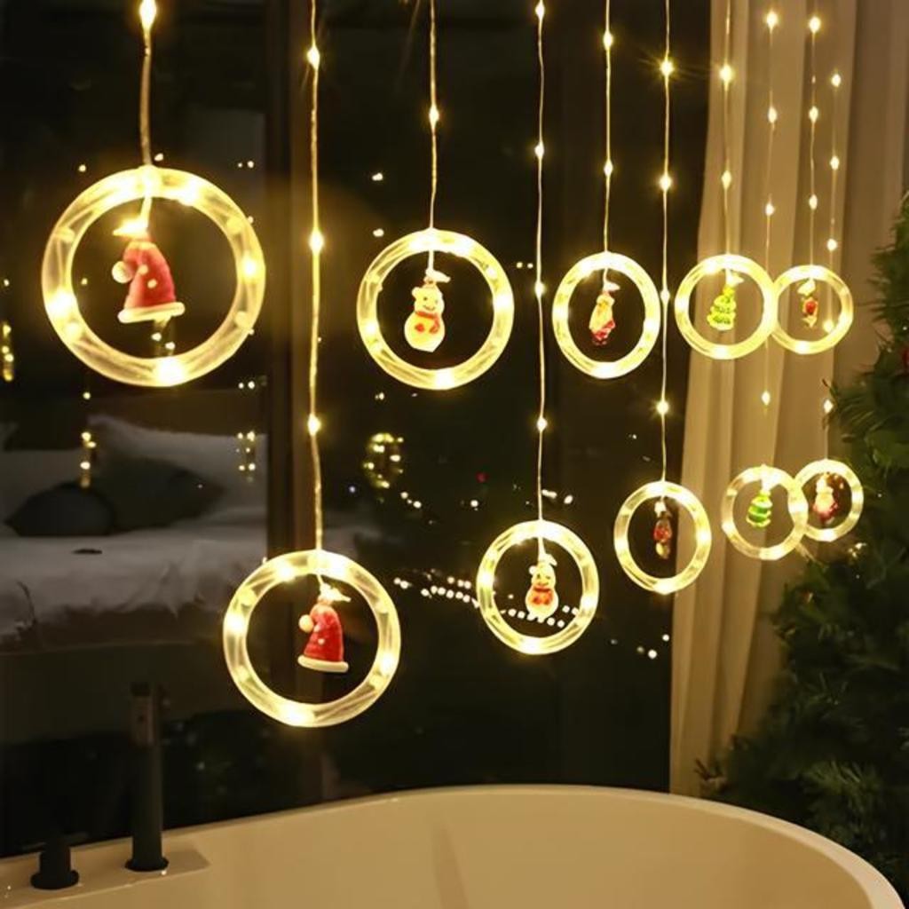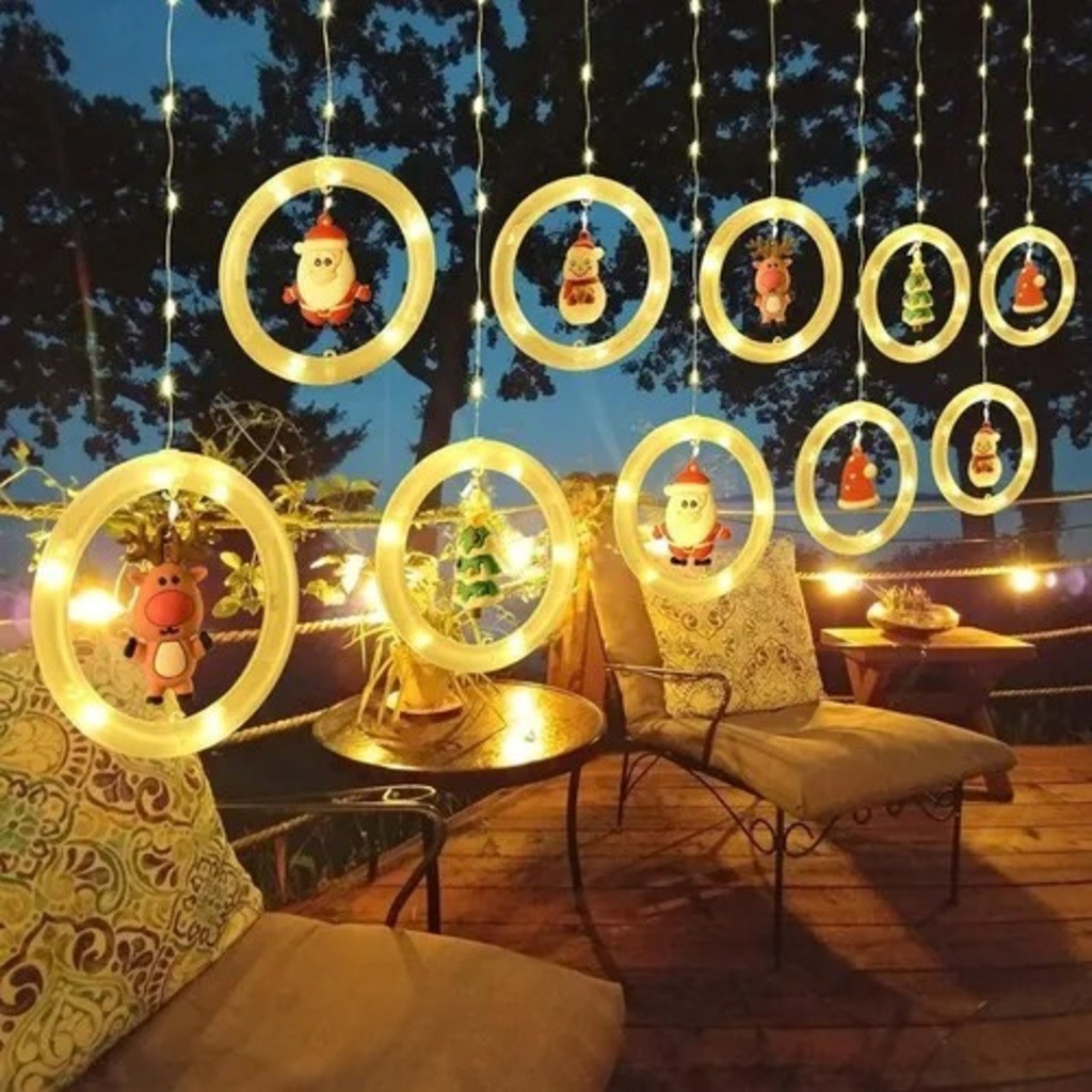 Cascata De Led 3M Com Argolas Com Enfeites Natalinos 100 Leds Bivolt Fio Transparente Branco Quente