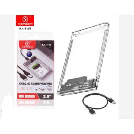 Case Para Hd Externo 2.5" Usb 3.0 Cabo Y Para Celular Android Tipo-c E Pc Transparente