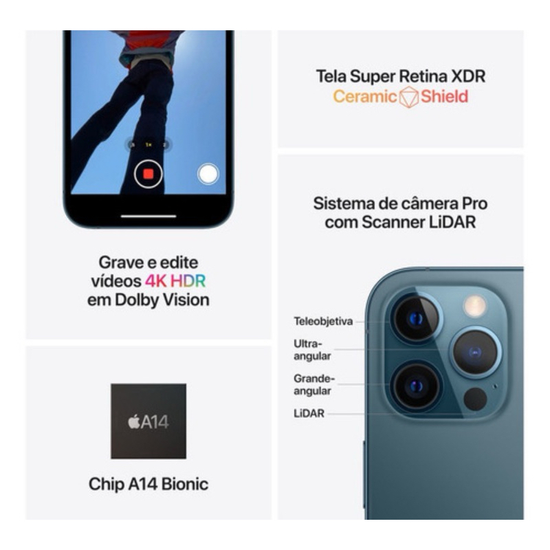 Celular iPhone 12 Pro Max (128GB) (256GB) 100% Original Apple Seminovo Vitrine Bateria 85% a 100% NF Carregador Película