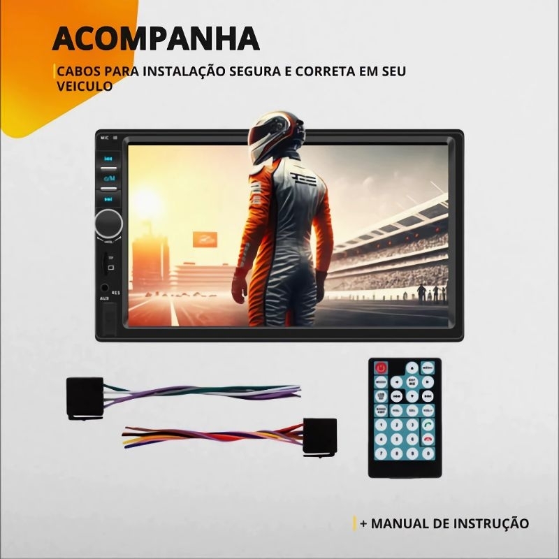 Central Multimídia 2 Din Bluetooth USB Sd Fm radio + câmera de ré