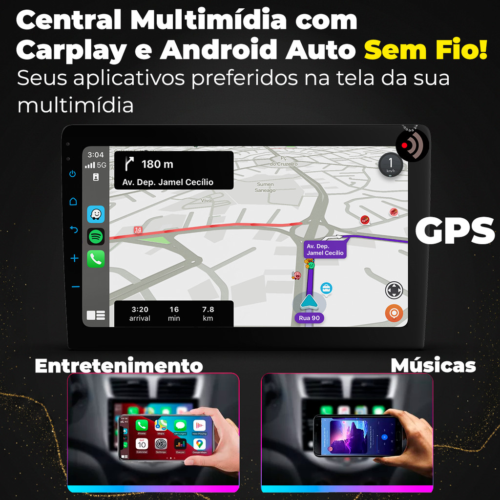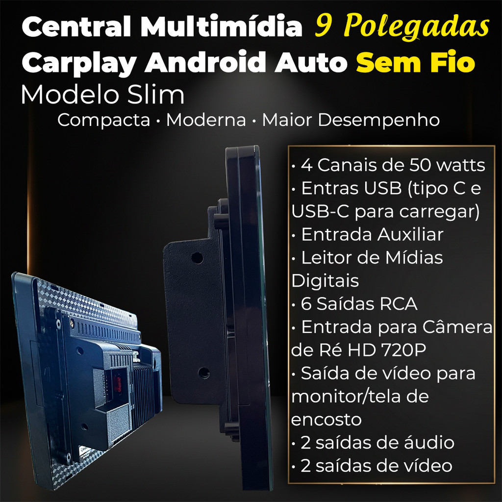Central Multimídia 9 Polegadas Carplay Android Auto Sem fio Aplicativos + Câmera de ré - Roadstar