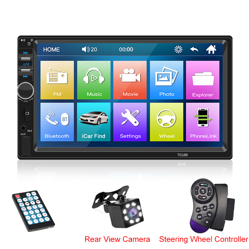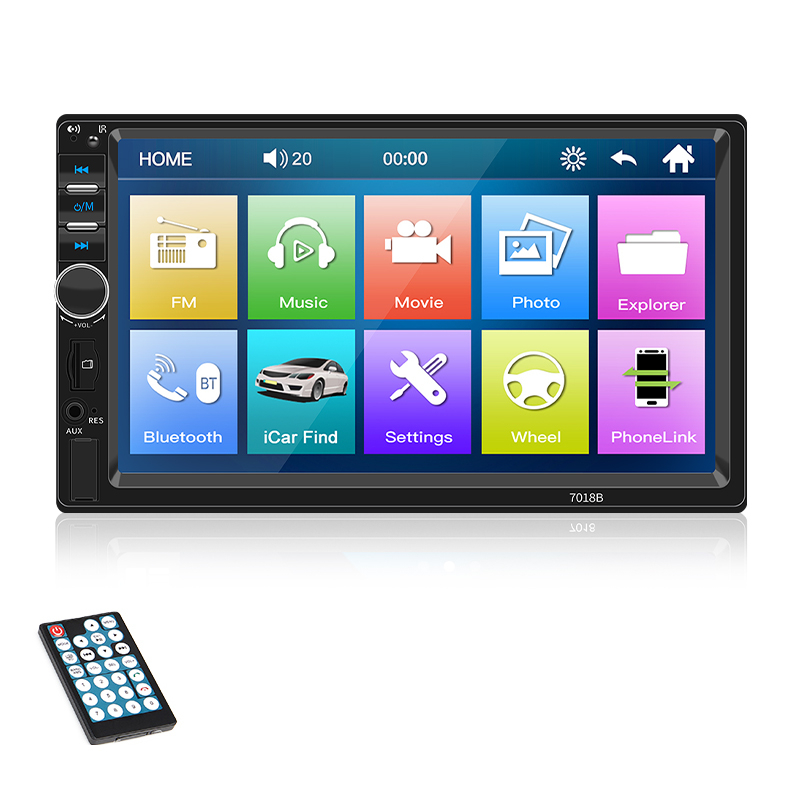 Central Multimídia Automotiva 1 Din 7 Inch MP5 Bluetooth Com Tela Sensível Ao Toque USB/AUX/TF Mirrorlink