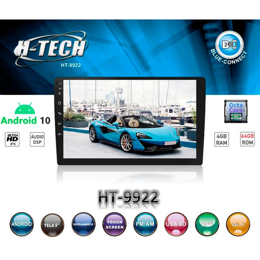 Central Multimidia Android 10 USB Octa Core 4GB RAM 64GB GPS 9 Polegadas HT-9922