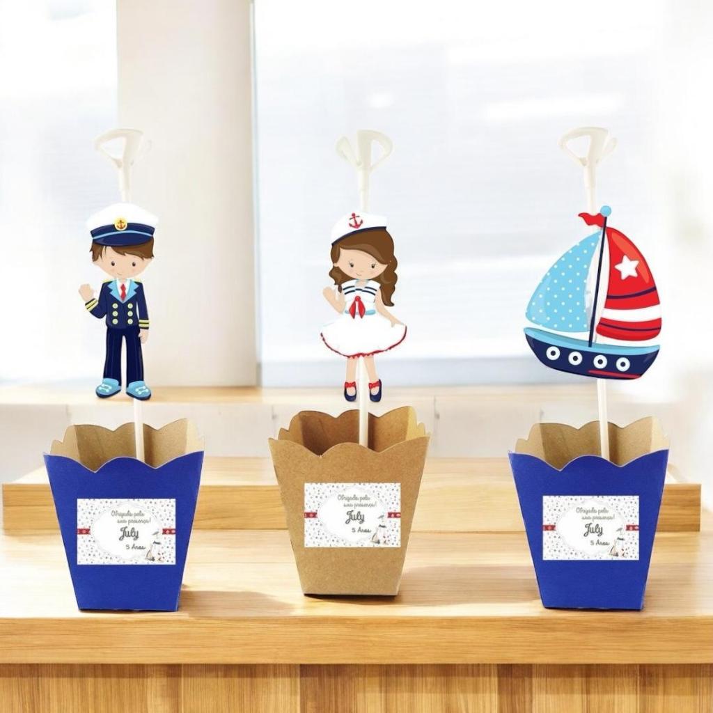 Centro de Mesa Marinheiro Infantil Personalizado Lembrancinha Festa Náutica Barquinho