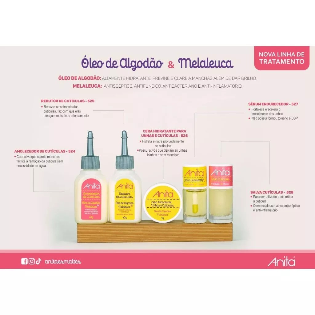Cera Hidratante Unhas e Cutículas Anita 10g – Óleo de Algodão e Melaleuca Manicure