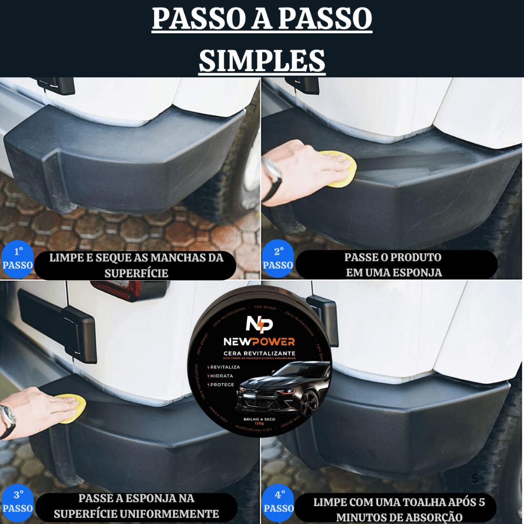 Cera Revitalizante para Plástico, couro, para-choque, vinil + Espuma de Aplicação Inclusa