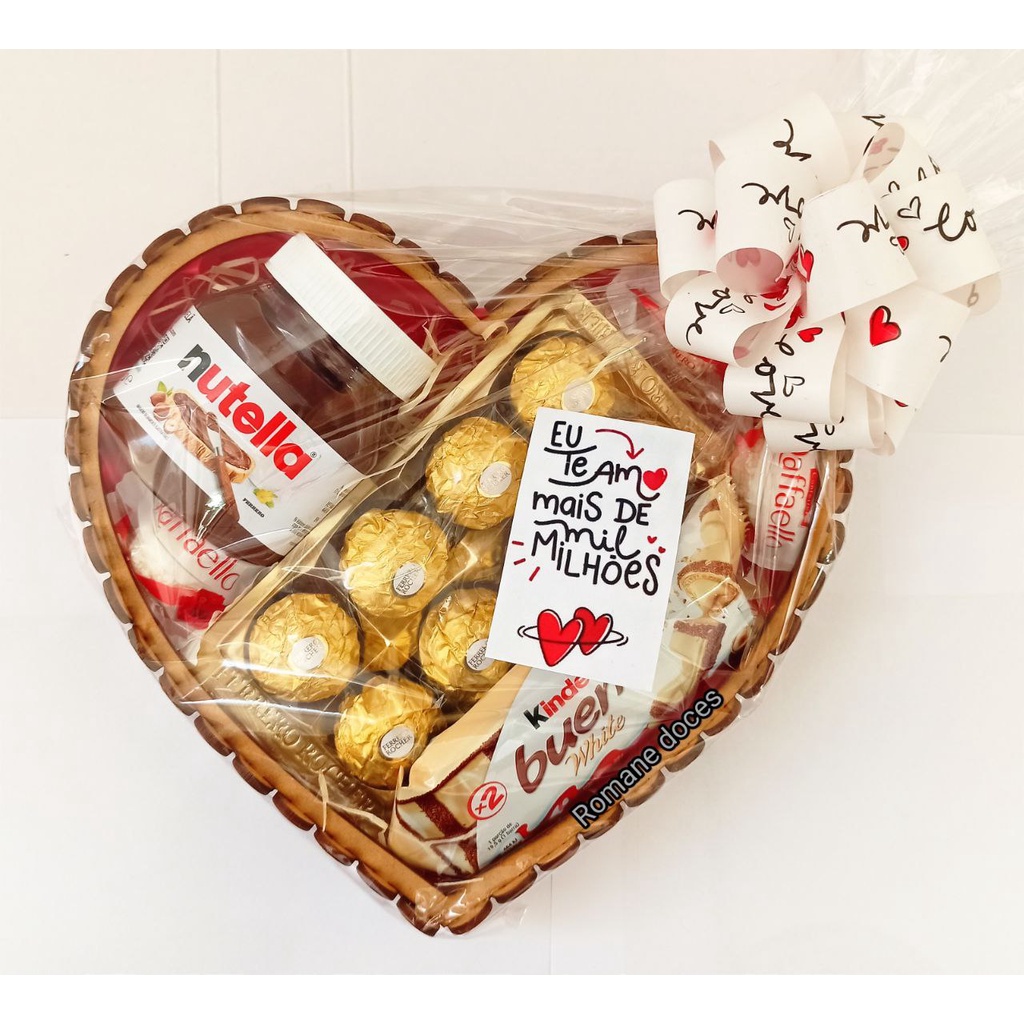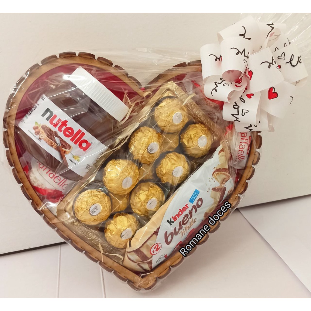 Cesta de Coração Para Presentear Ferrero (Aniversário, Namorados, Amigo, Dia das Mães, Dia dos Pais)
