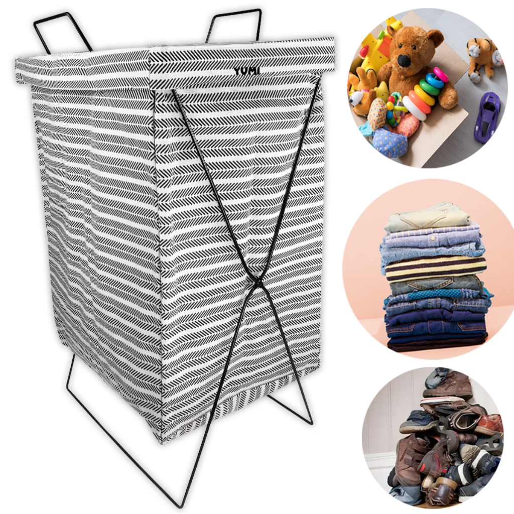 Cesto C/ Saco De Roupas Sujas Brinquedos Sapatos 50 Litros Aço Dobrável Grande 35x60 Original Yumi