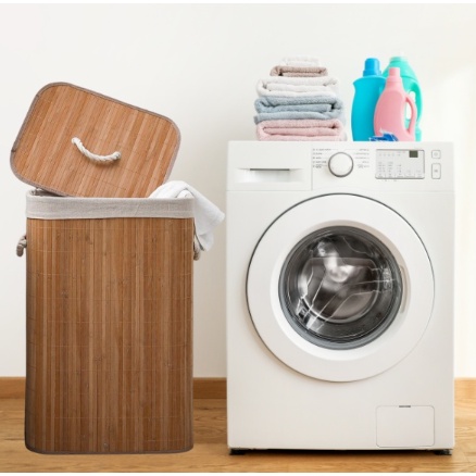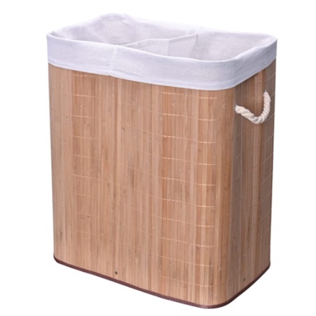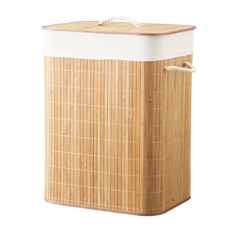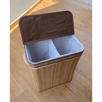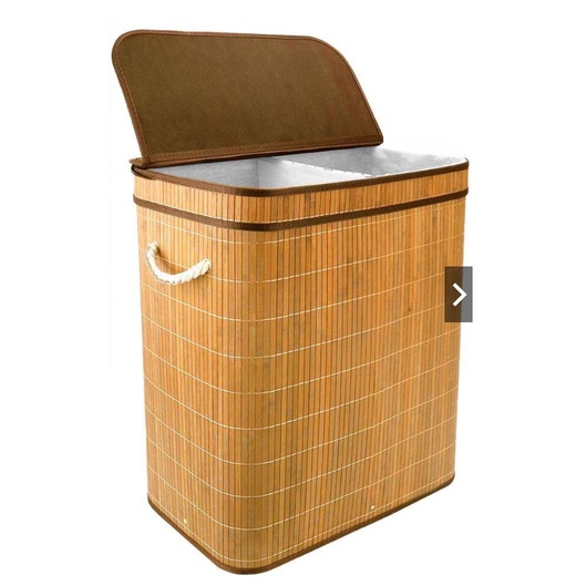 Cesto De Roupa Sujas Forro DUPLO Retangular Bambu Grande Com Tampa Forrado Banheiro E Lavanderia