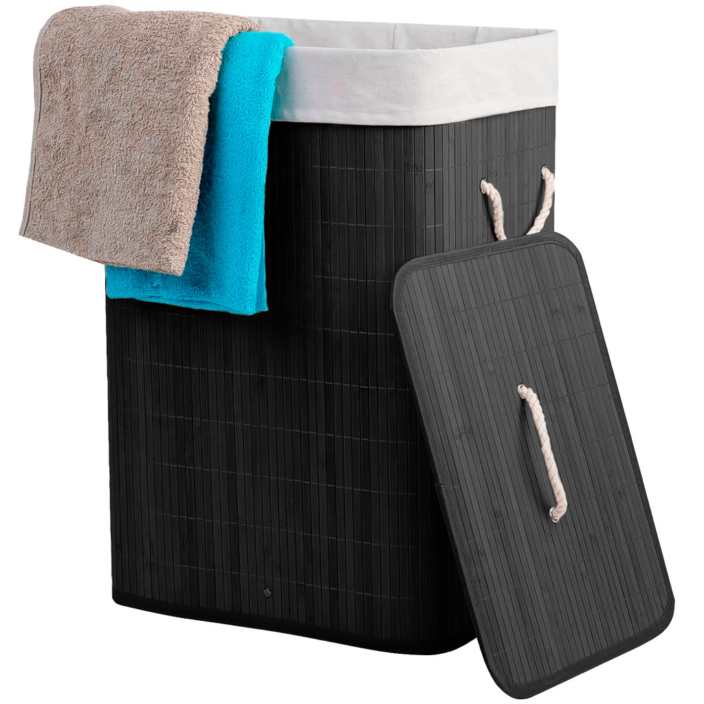 Cesto De Roupas Bambu Dobravel Retangular Banheiro Lavanderia Organizador Forrado 60L