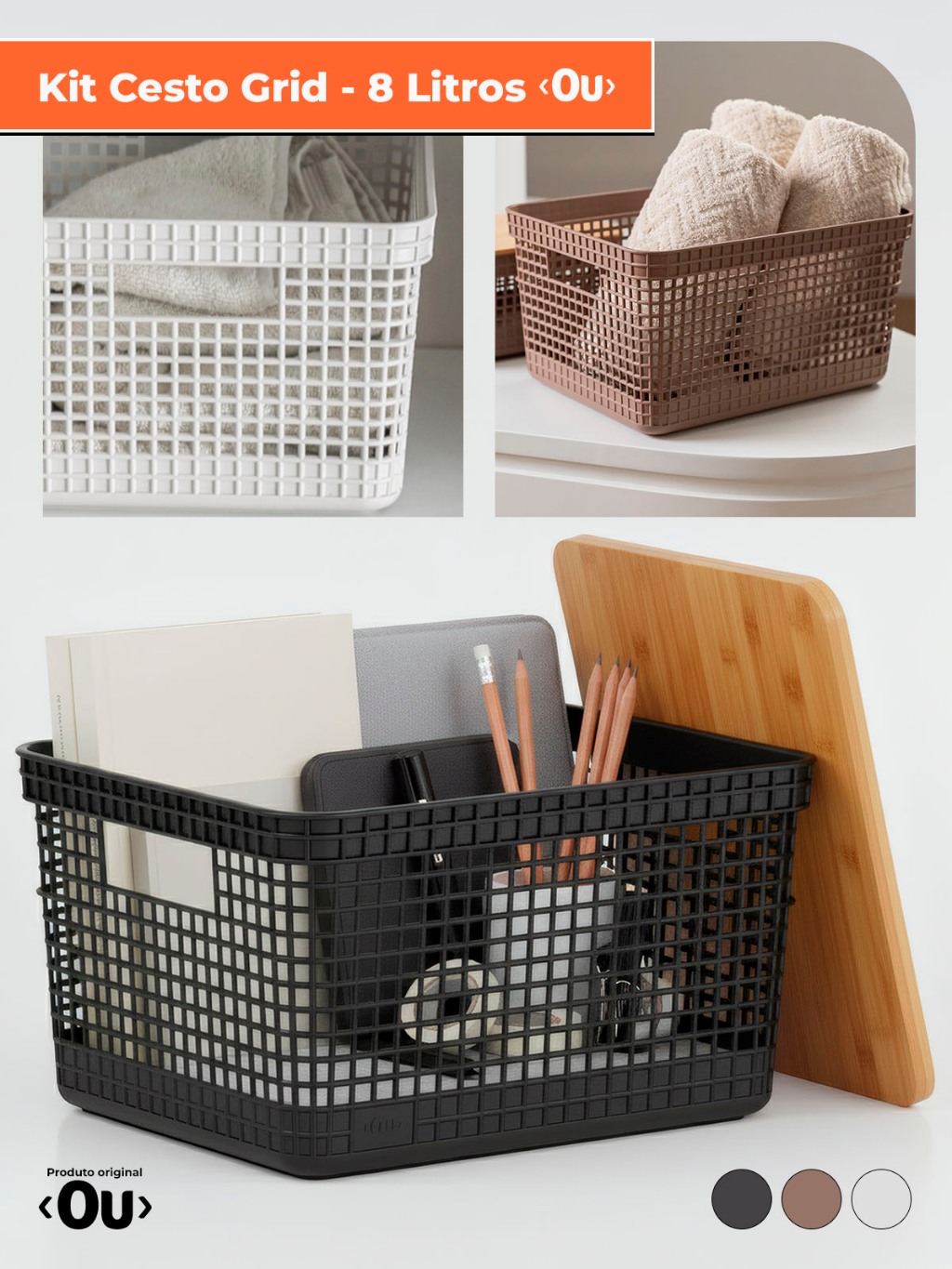 Cesto Organizador Grid Com Tampa De Bambu 8 Litros OU