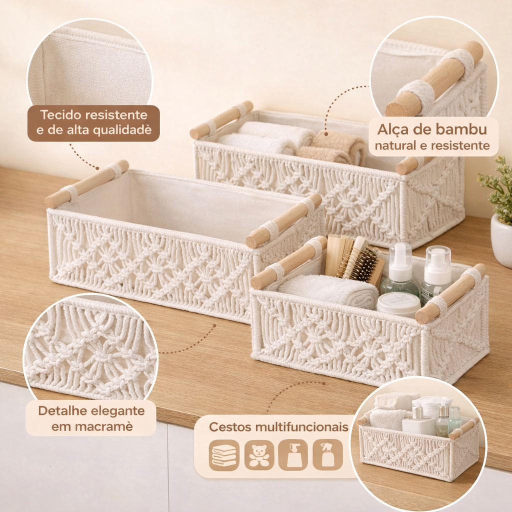 Cesto Organizador Tecido + Bambu Cestas Multifuncional Caixa De Armazenamento