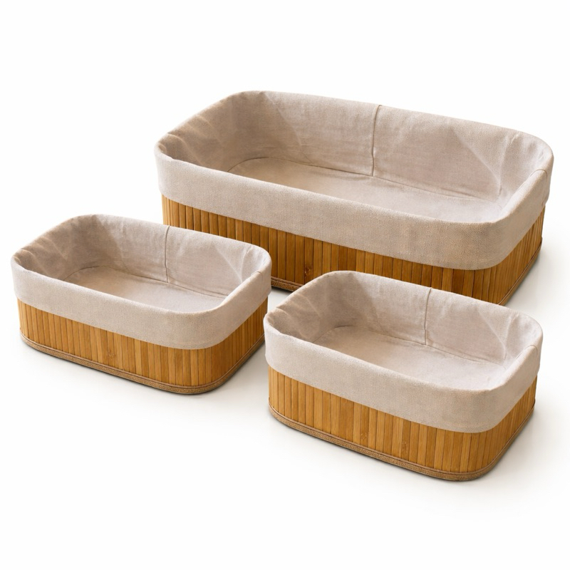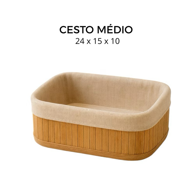 Cesto Organizador de Bambu Multiuso Forro Organizador Objetos Quarto Roupa Banheiro