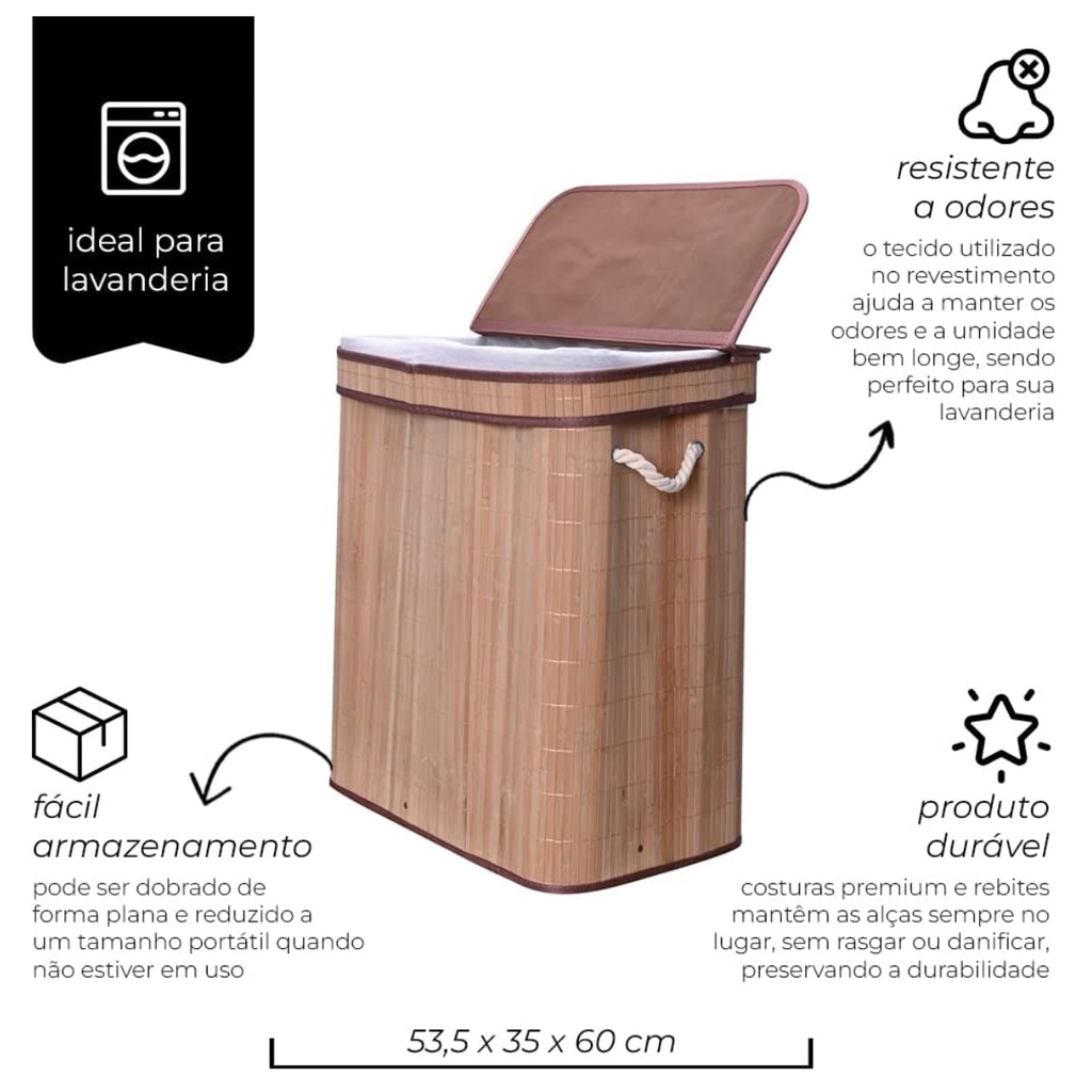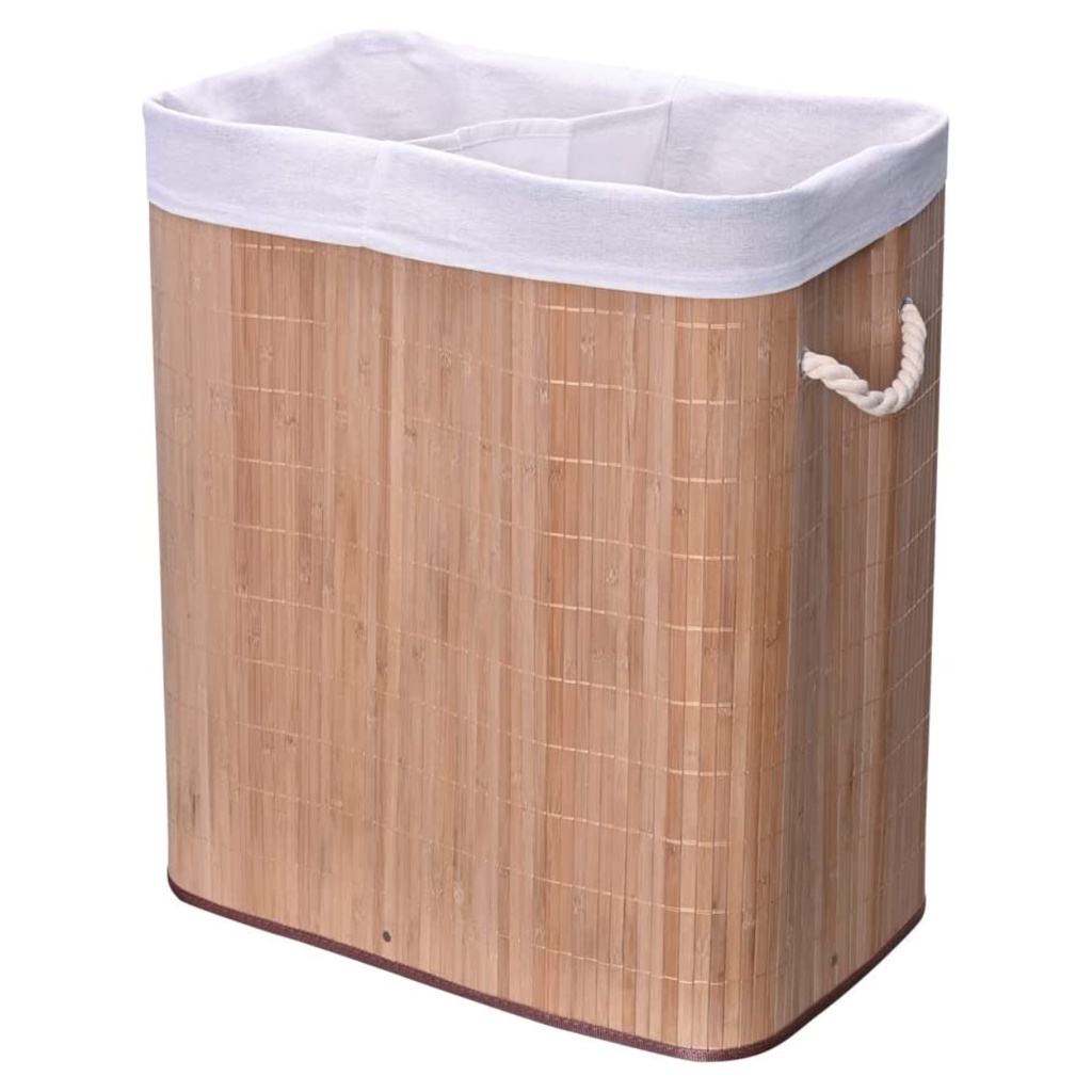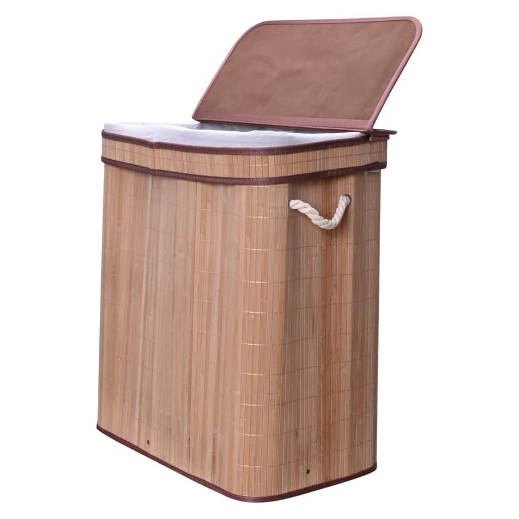Cesto de Roupa Suja em Bambu Duplo Retangular Com Tampa Mimo Style - 100 Litros