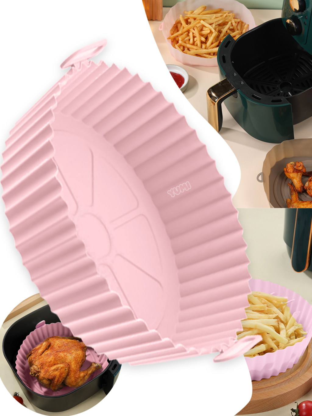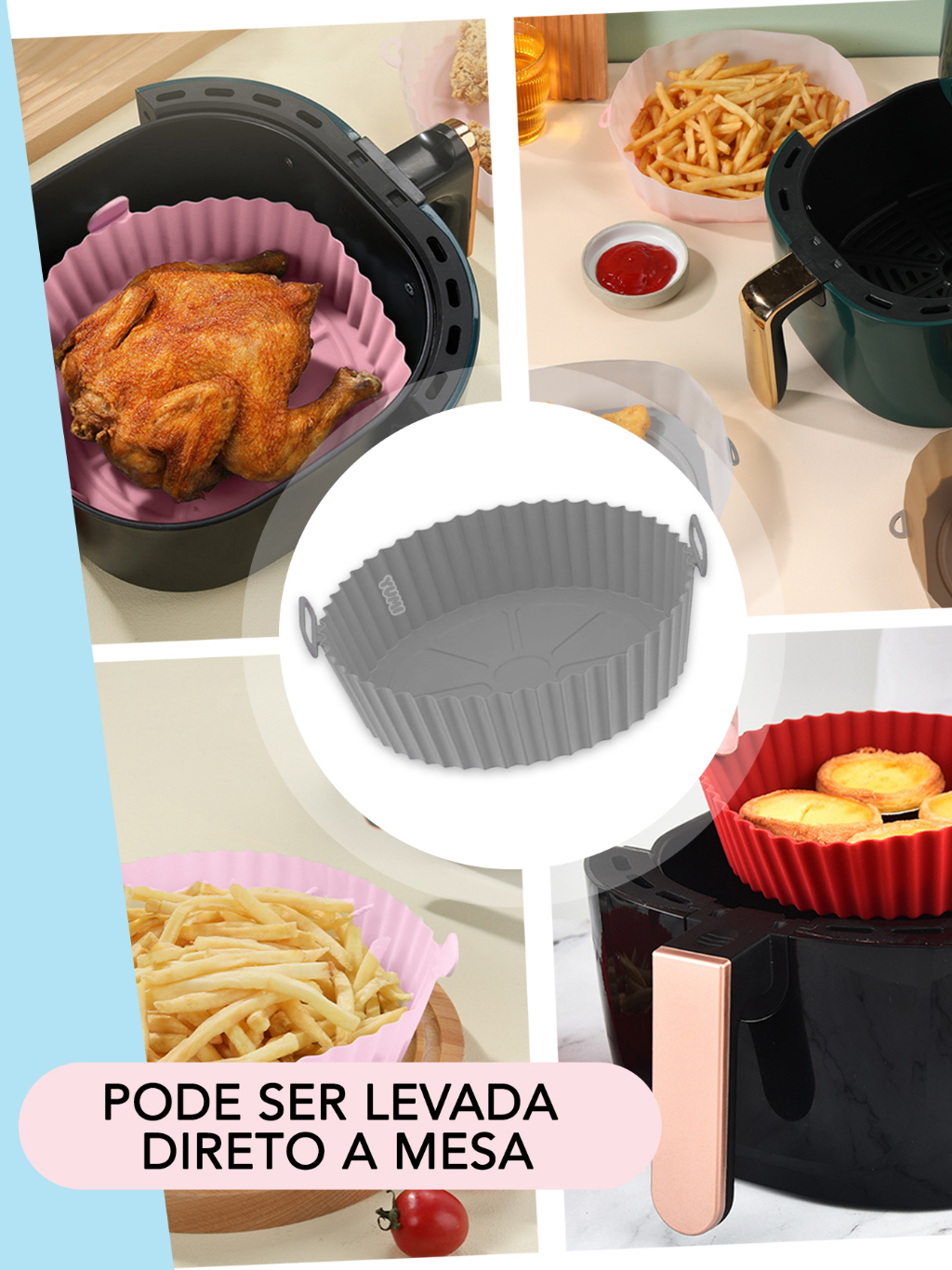 Cesto de Silicone Redondo Air Fryer e Forno Forma para Fritadeira Elétrica com Alça Grossa 80g + Resistente + Durável