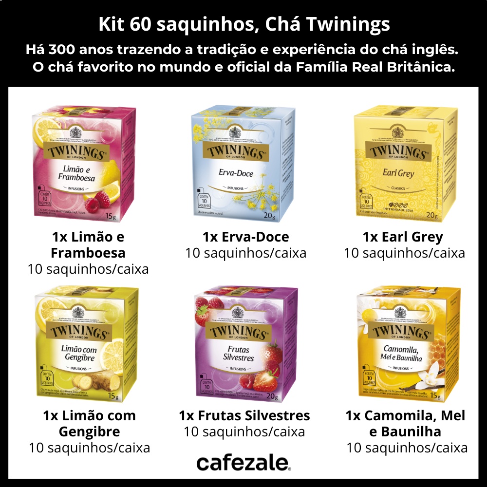Cha Twinings Importado, 6 caixas com 10 saquinhos