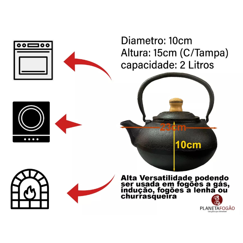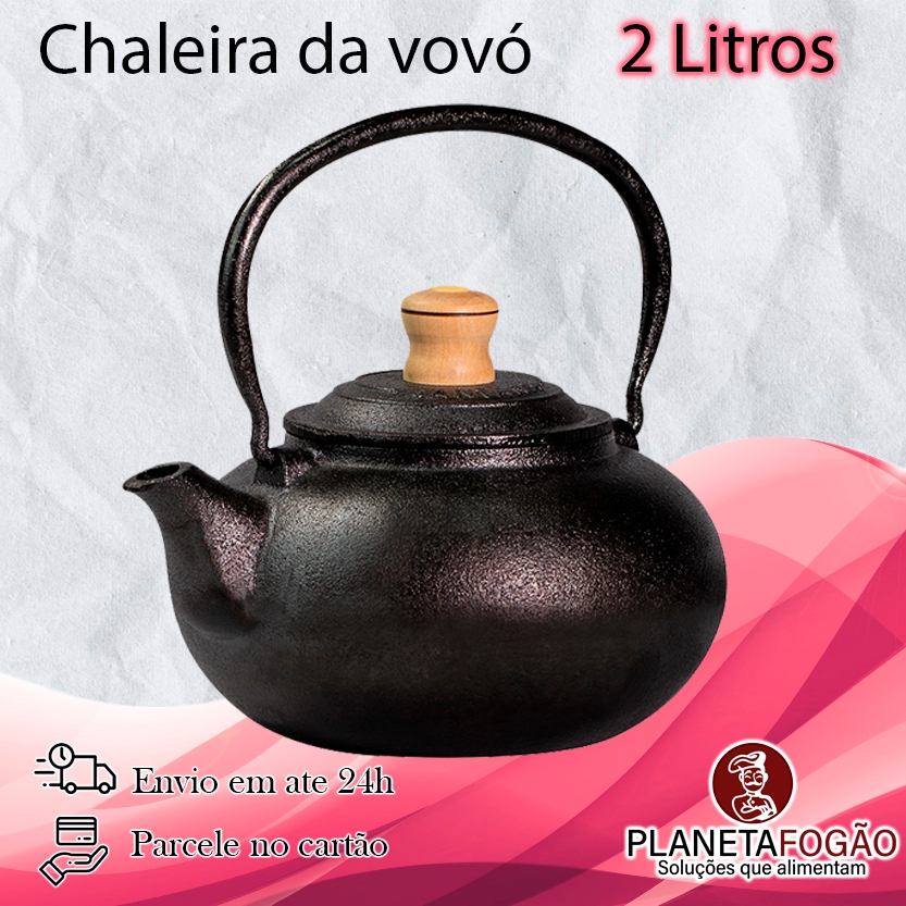Chaleira Bule Da Vovó Em Ferro Fundido Com Alça E Tampa de Ferro 2 Litros