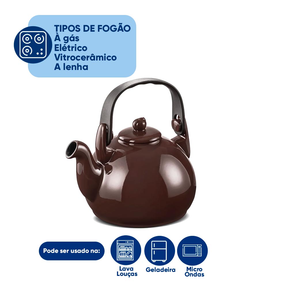 Chaleira Colonial de Cerâmica 1,7 Litros Chocolate Ceraflame