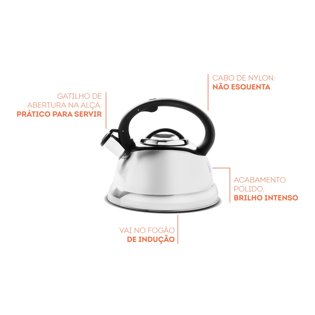 Chaleira Com Apito Brinox Roma 2,7 Litros Aço Inox