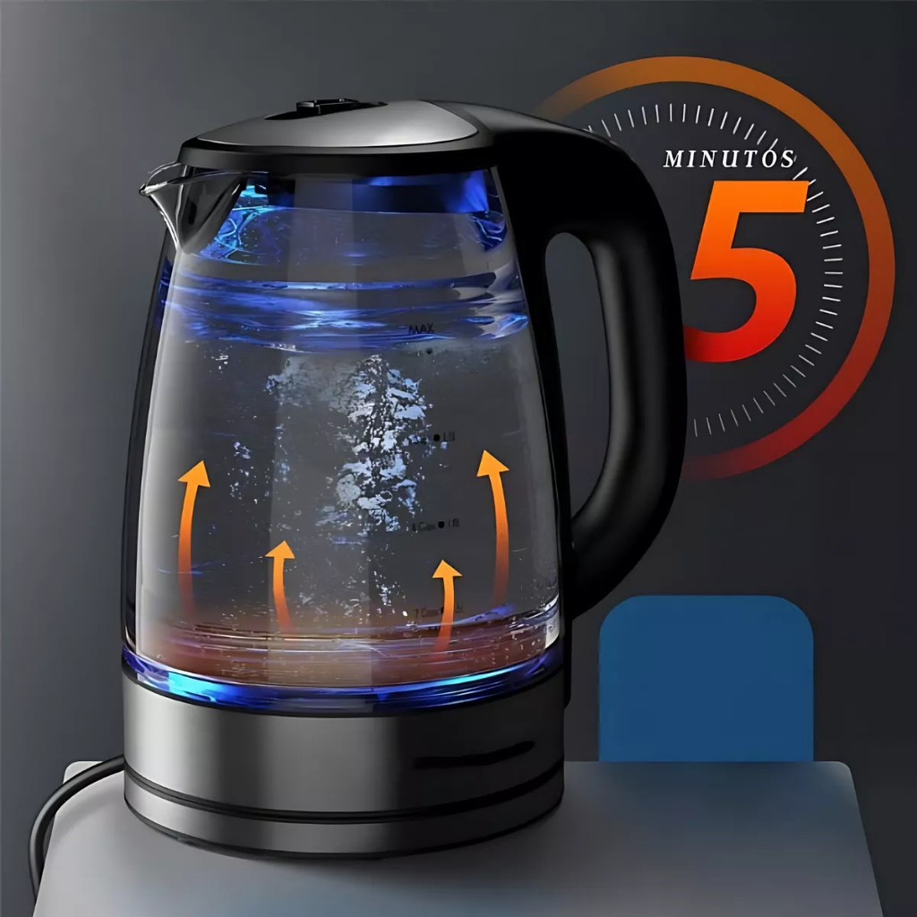 Chaleira Jarra Elétrica De 2 Litros Vidro Com Potência De 127V OU 220V Com Luz Led Azul Startools Prática