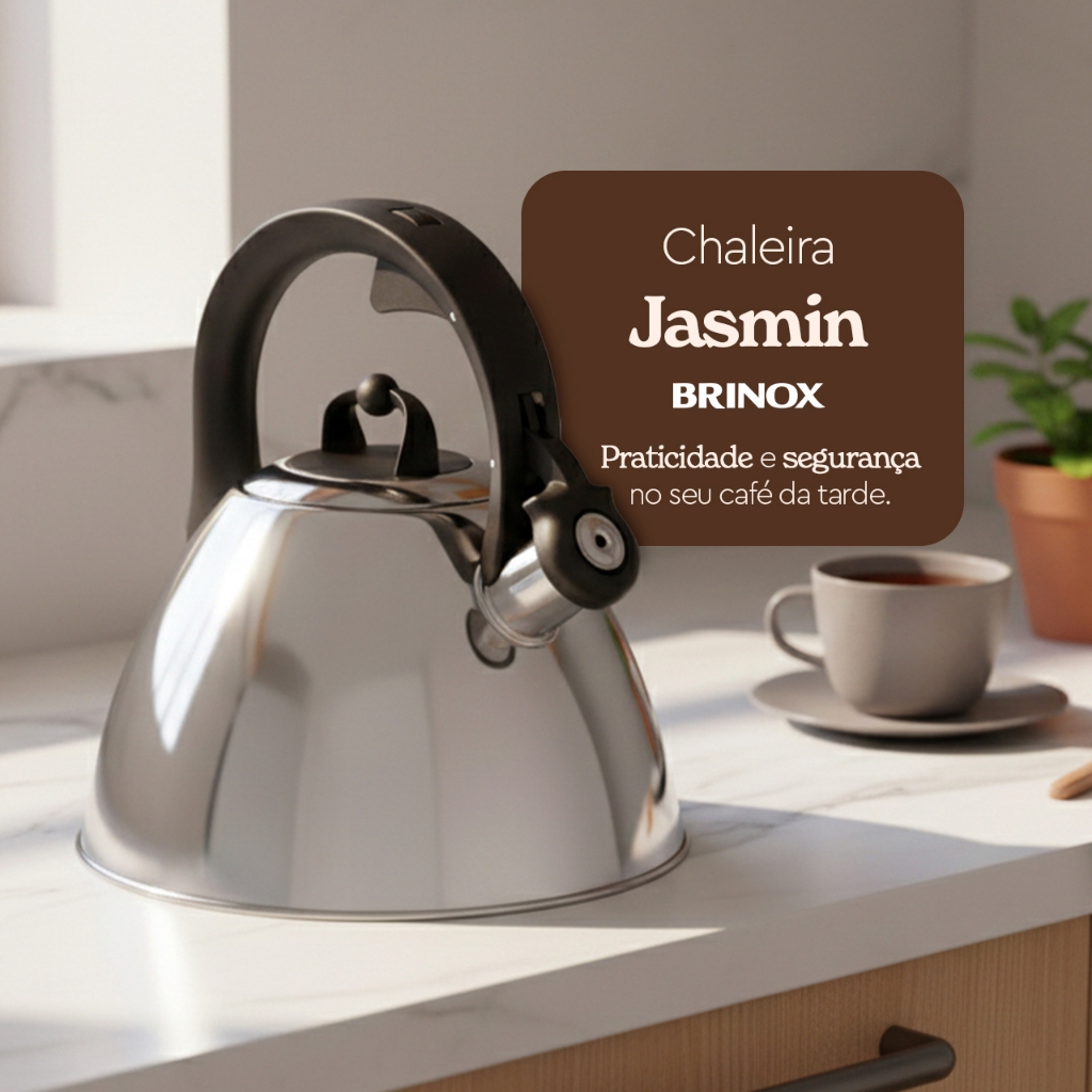 Chaleira de Inox com Apito Brinox 3 L Black Diamond e Jasmin com Indução