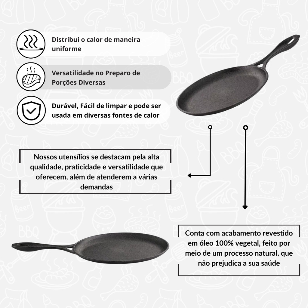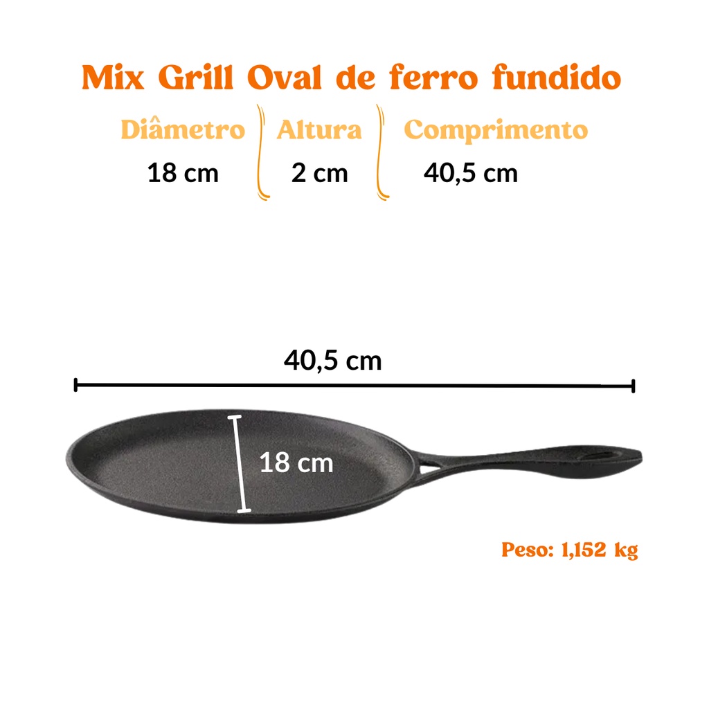 Chapa Frigideira Mix Grill Oval Ferro Fundido Santana