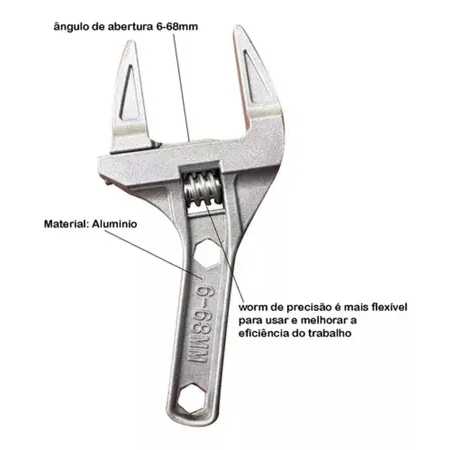 Chave De Boca Inglesa Ajustável Aço Carbono 6 - 68mm Grande Abertura Pia Torneira Bomba D'água