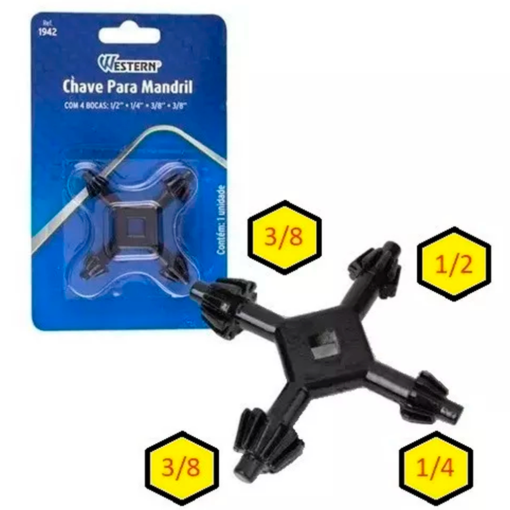 Chave De Mandril Furadeira 4 Bocas 1/2, 1/4, 3/8, 3/8Pol. Uso Profissional Tira Aperta Brocas Bits