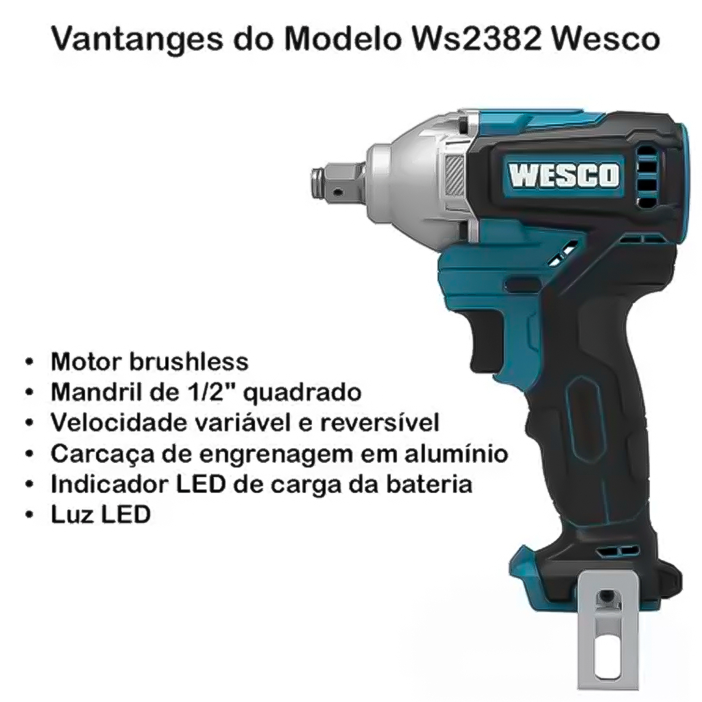 Chave Impacto Bateria 18v Brushless 300nm 30kgf Ws2382 Mecânico Serviço Pesado Torx Torque - WESCO