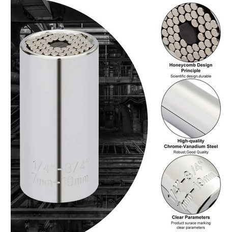 Chave de Boca Universal de 7mm a 19mm com Adaptador para Parafusadeira Furadeira