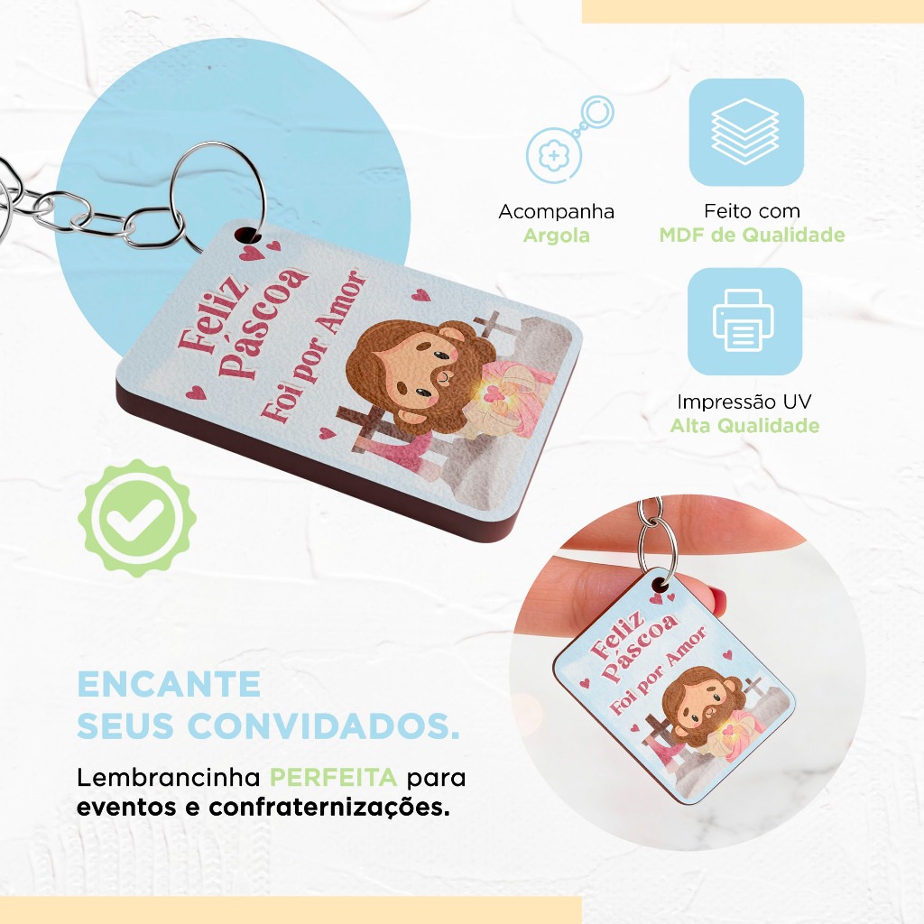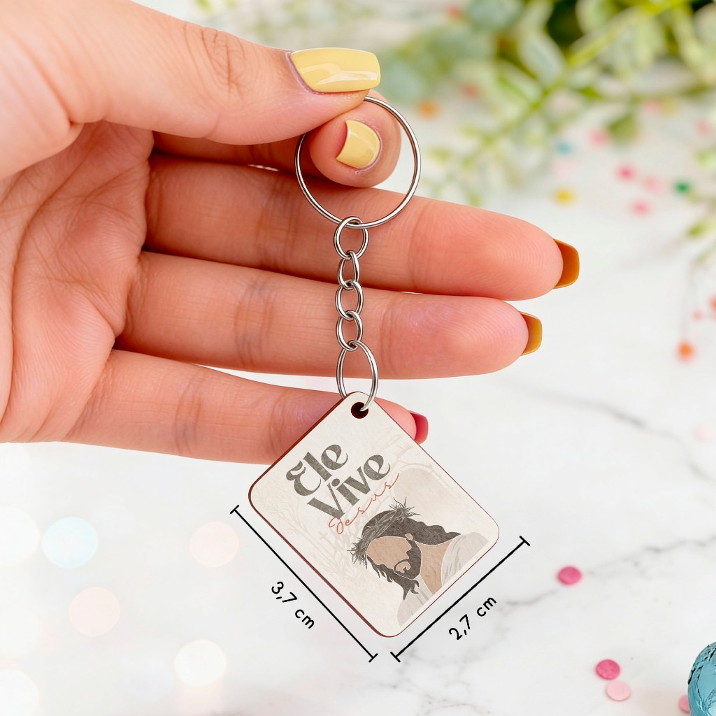 Chaveiro Para Lembrancinha Feliz Páscoa Ele Vive Jesus Mimo Mdf