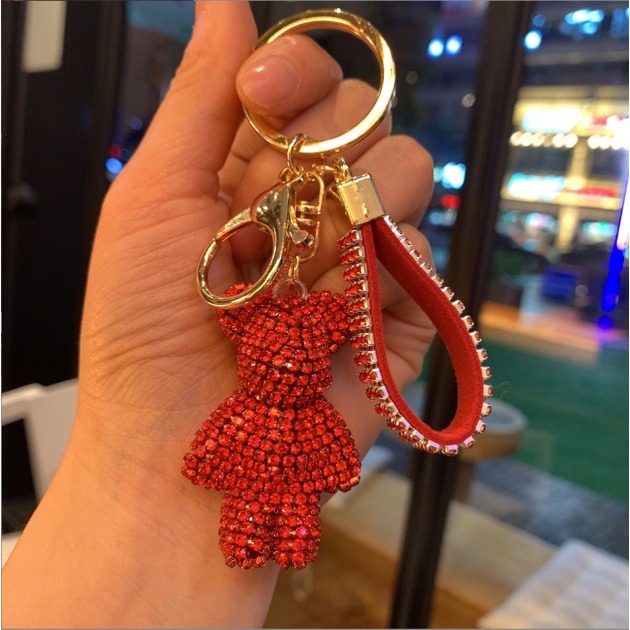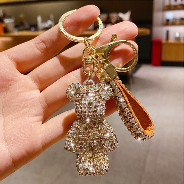 Chaveiro Porta-Chaves Pequeno Urso Diamante Criativo Carro Com