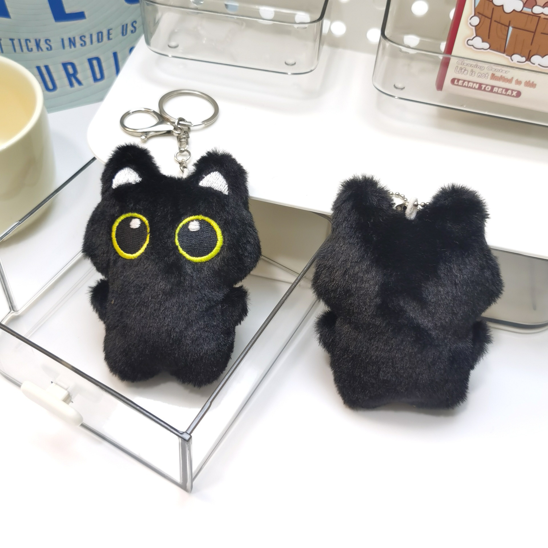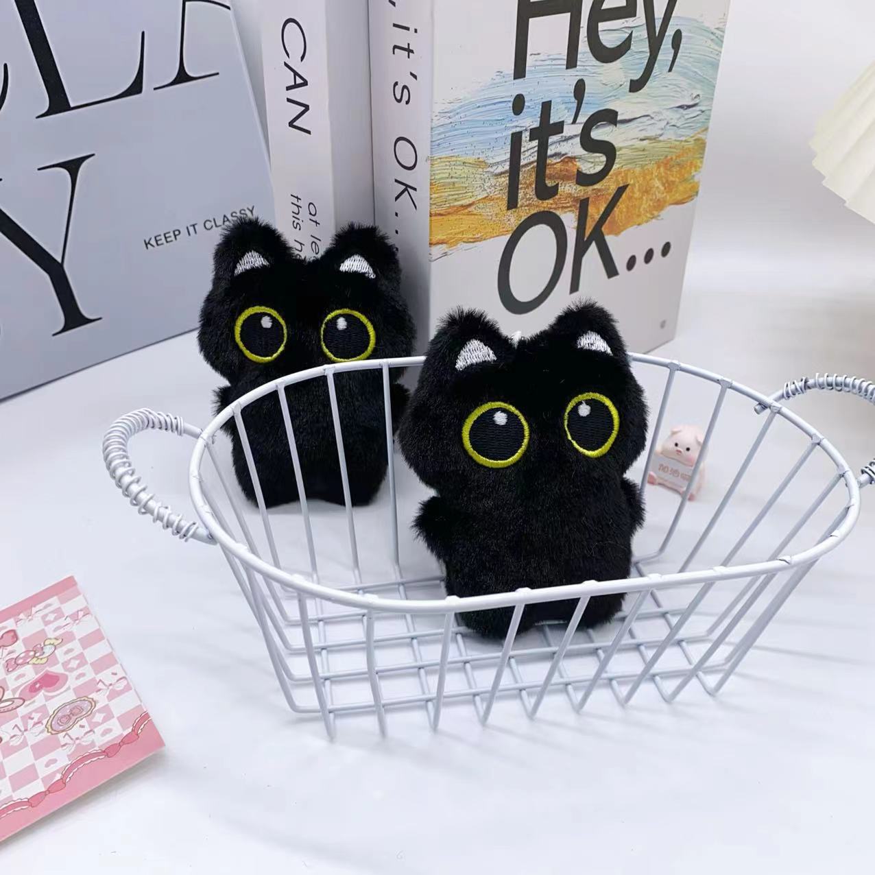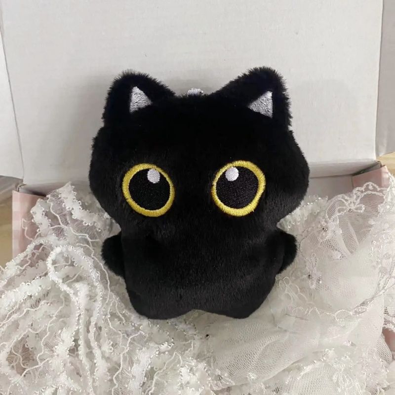 Chaveiro de Gato Preto Fofo, Brinquedo de Pelúcia, Pêndulo para Mochila, Decoração, Presente para Aniversário.