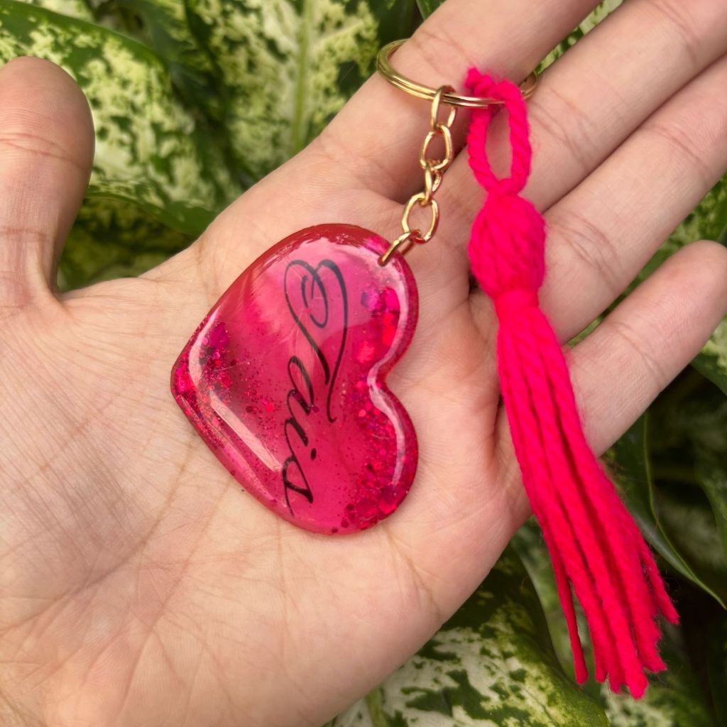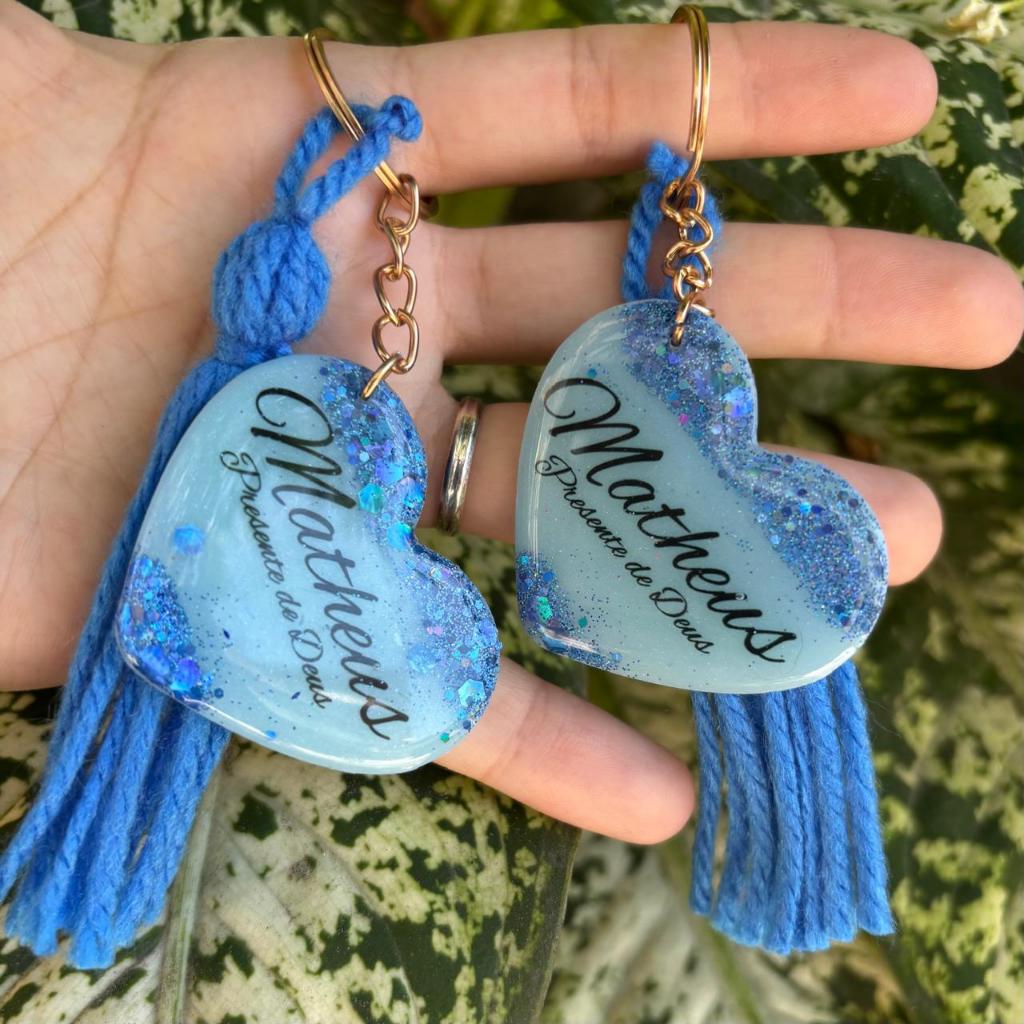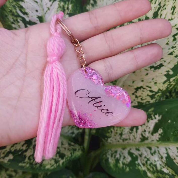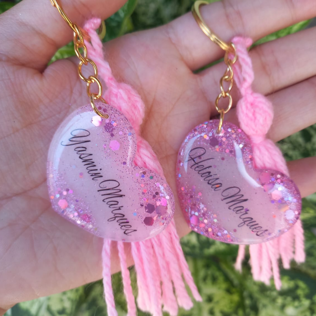 Chaveiro de coração Resina Personalizado com Nome Glitter tag mochila infantil