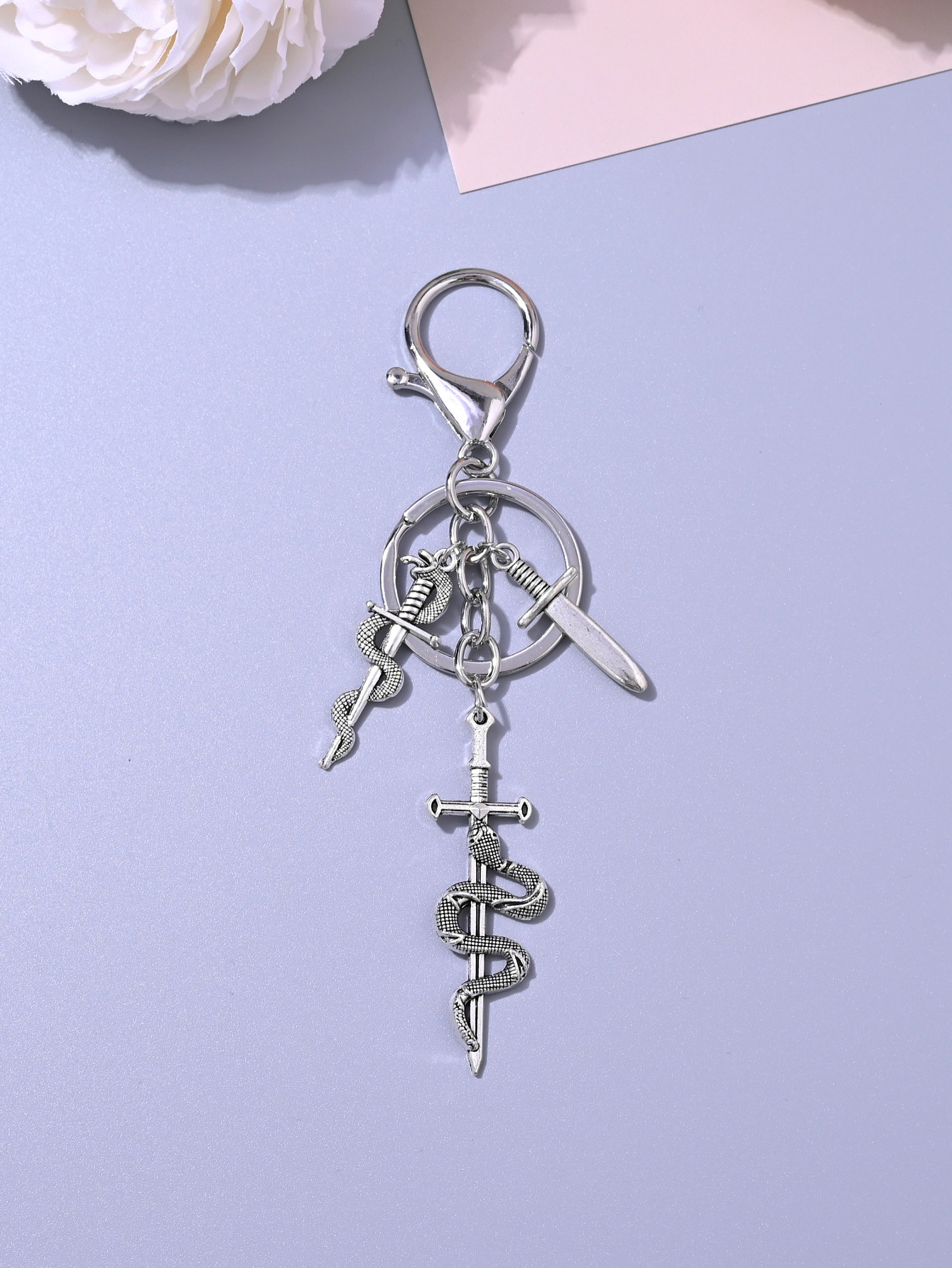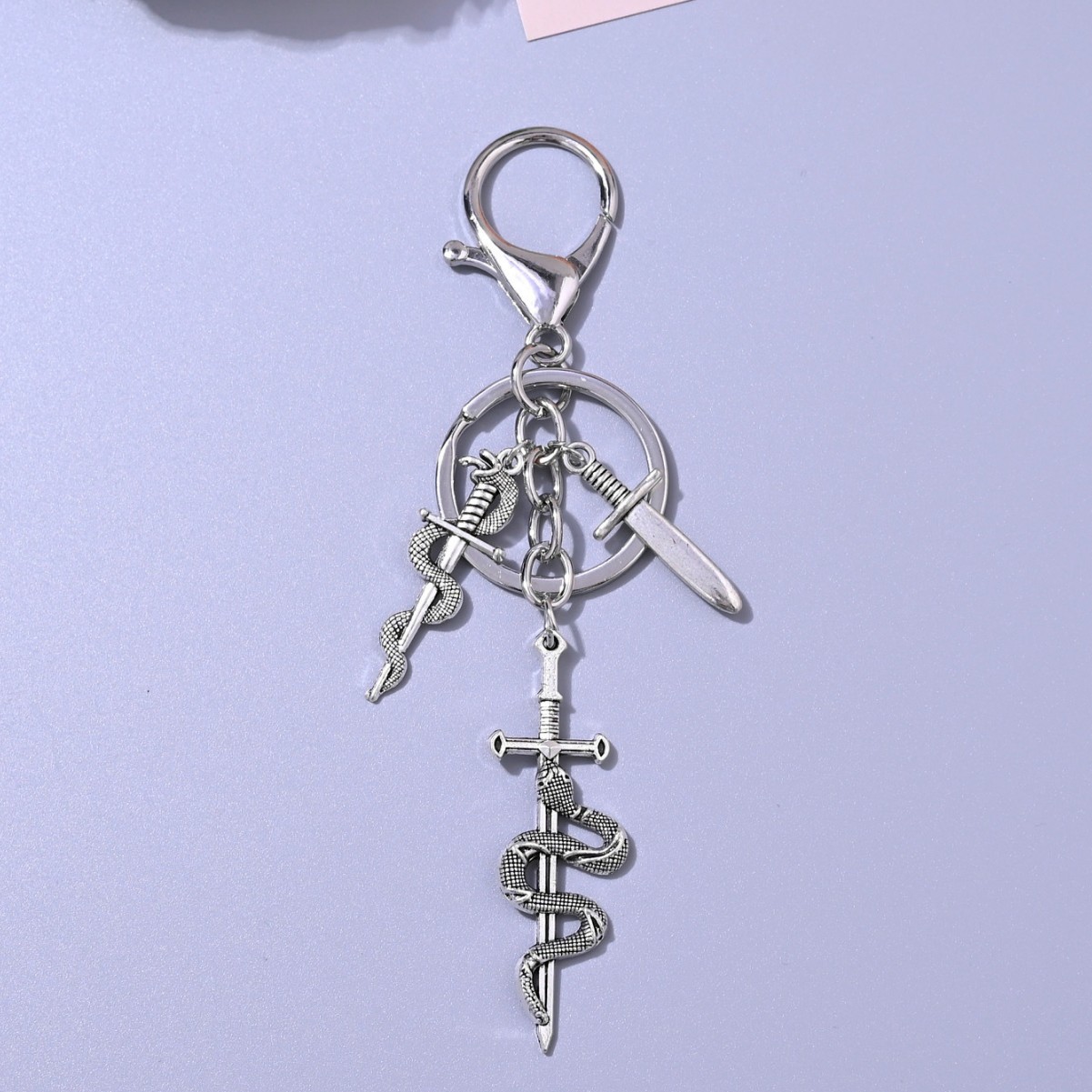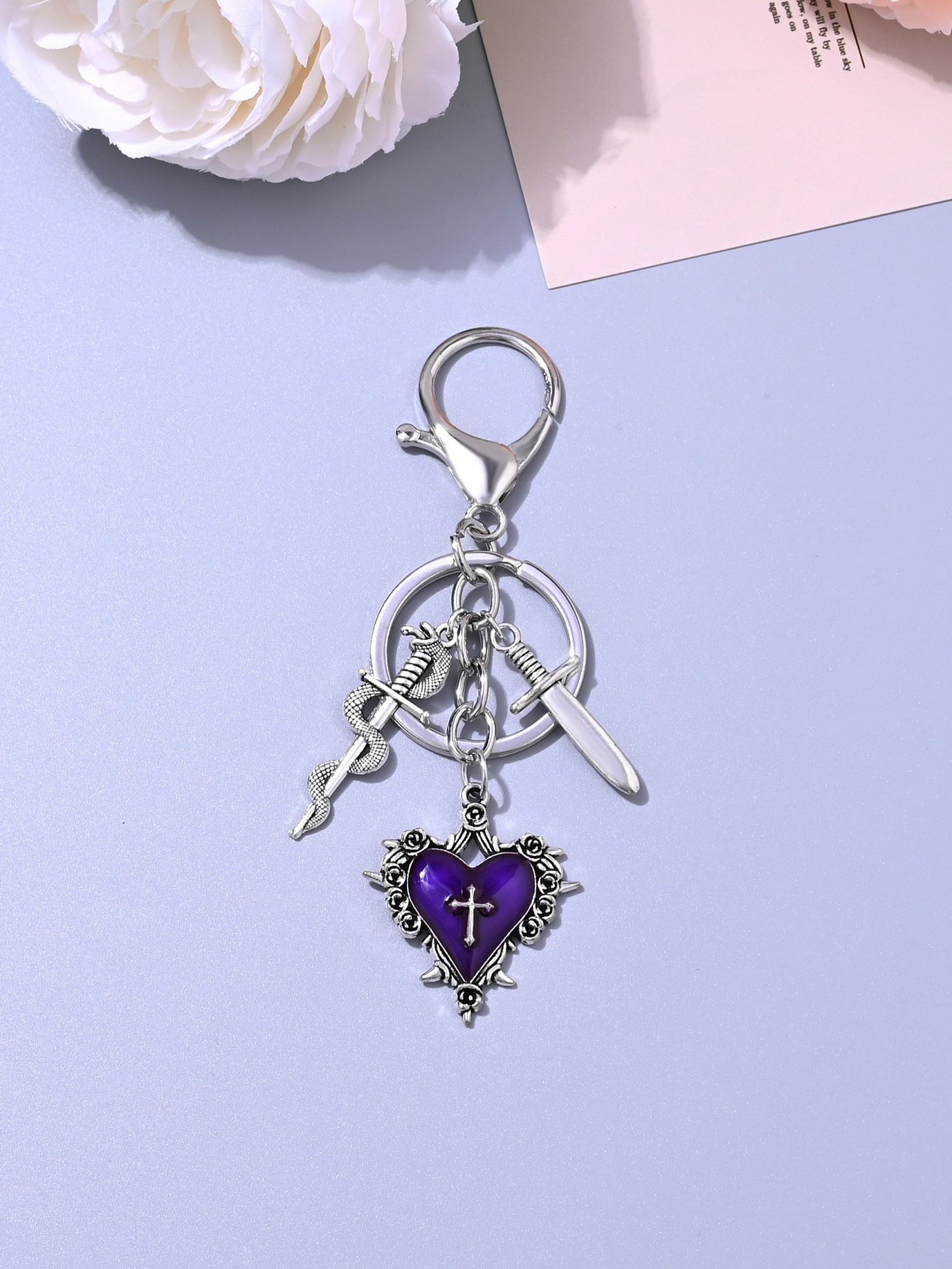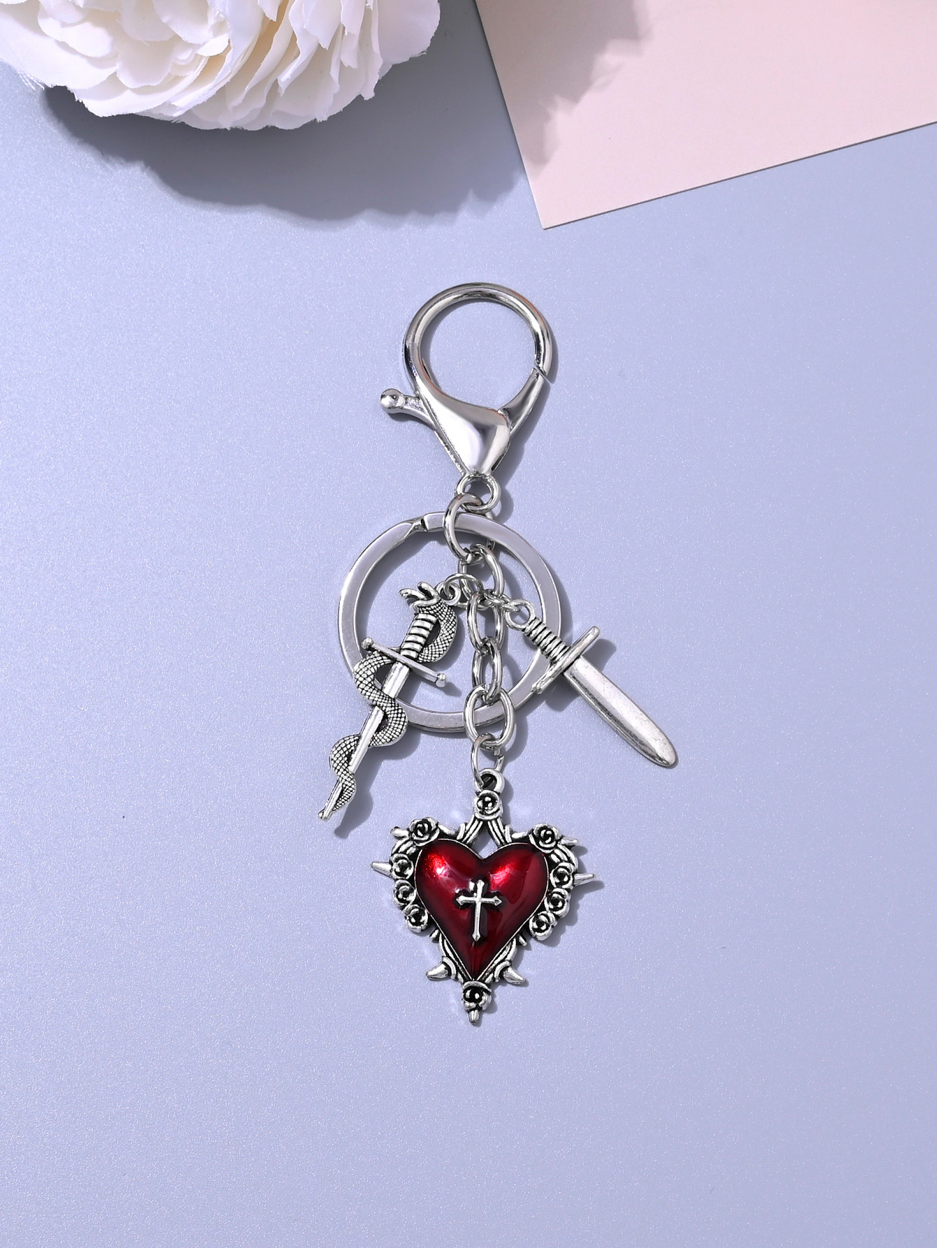 Chaveiro gótico retrô em formato de coração, cobra, espada enrolada, estrela, cruz, pingente para bolsa, chave de