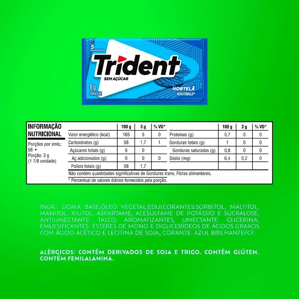 Chiclete Trident Hortelã Sem Açúcar 8g - Caixa com 21 Unidades