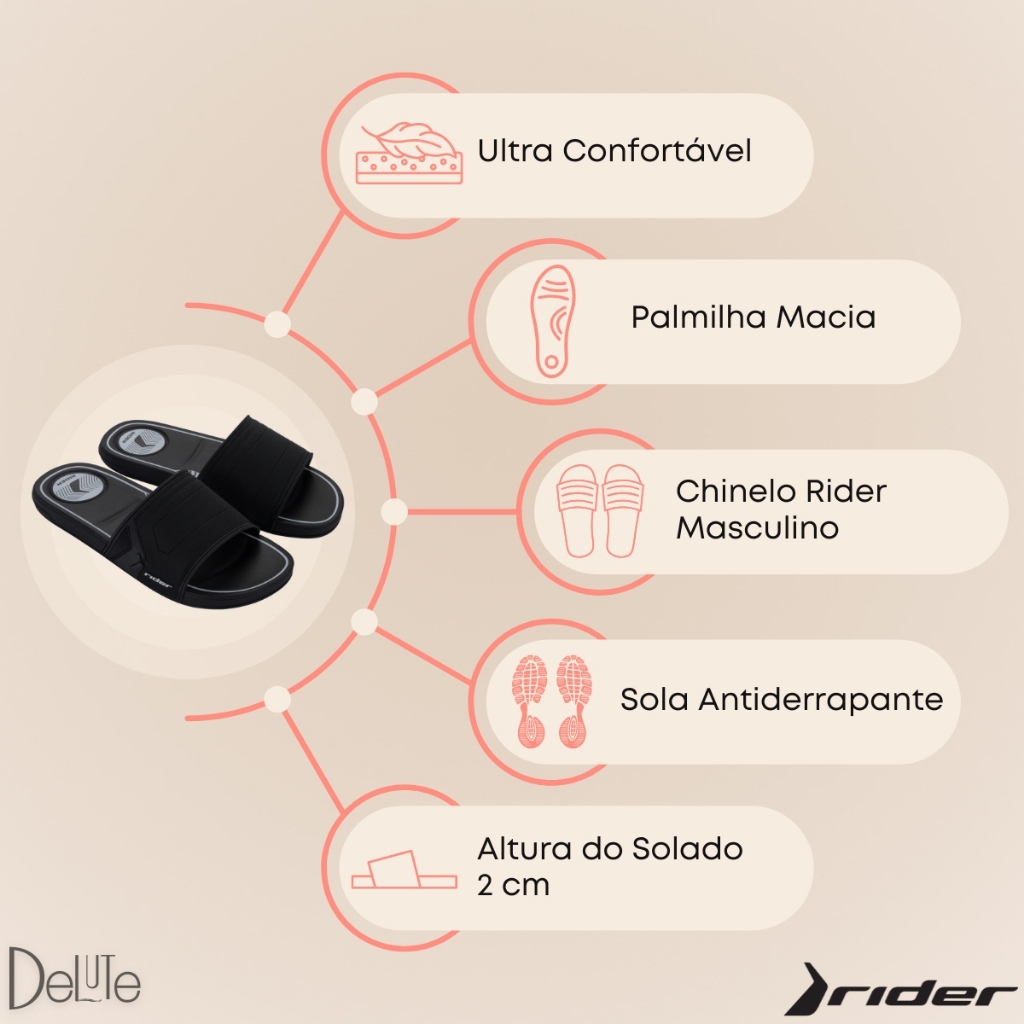 Chinelo Modelo Start Slide Masculino Rider Ultra Confortável Sandália Anatômico Casual Adulto Leve