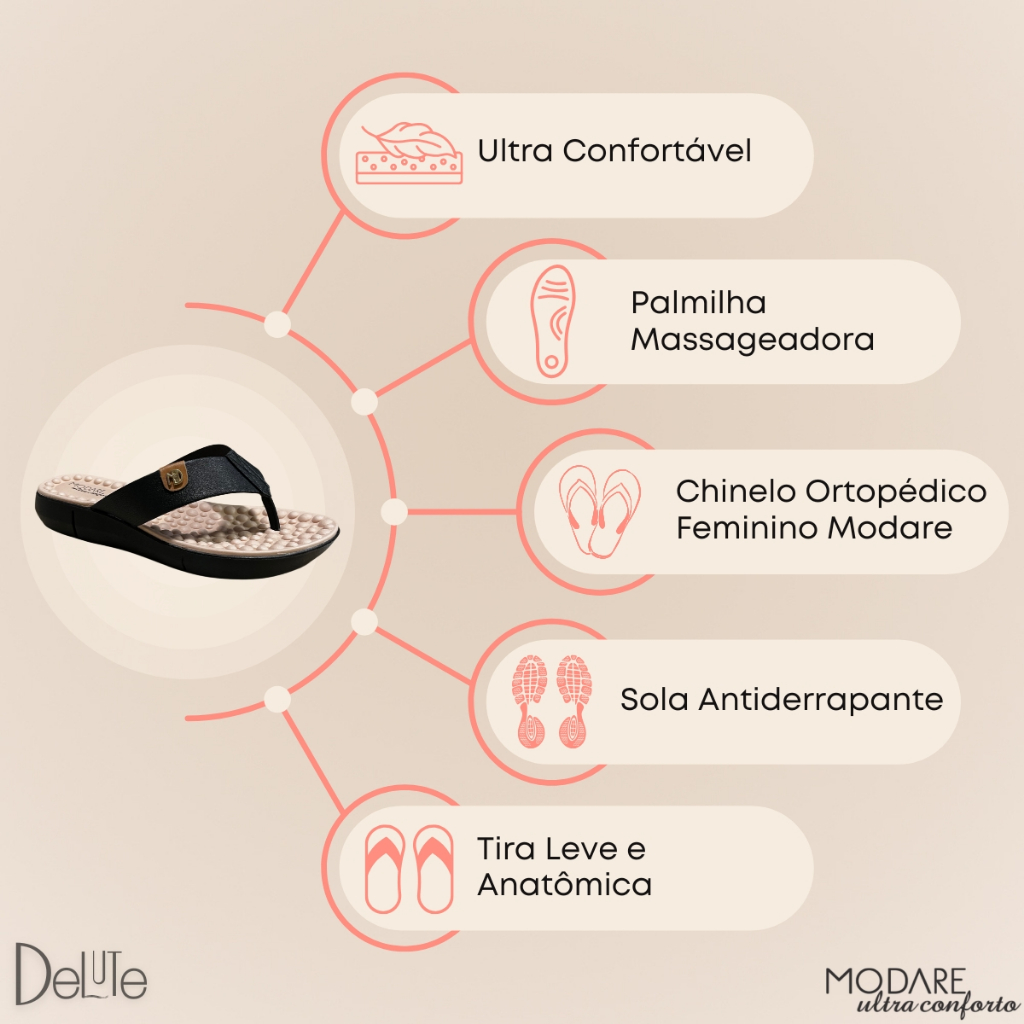 Chinelo Ortopédico Feminino Modare Palmilha Reflex Sense com Esferas Massageadoras Ultra Conforto