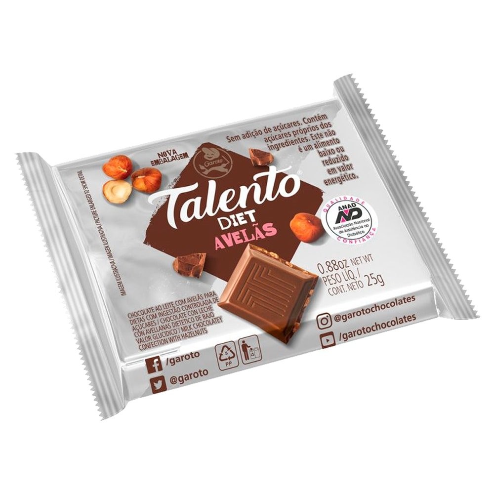 Chocolate Talento Diet 25g Embalagem com 15 Unidades