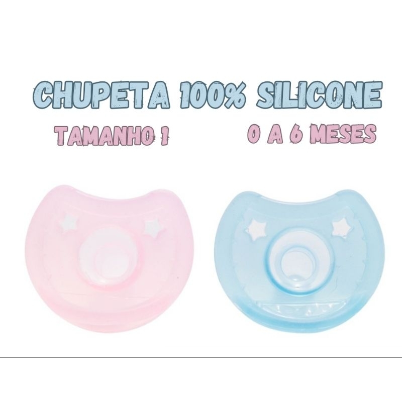 Chupeta 100% silicone tamanho 1 para bebês de 0 a 6 meses