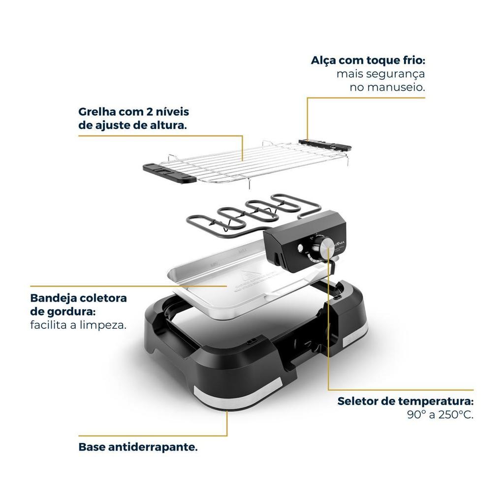 Churrasqueira Elétrica Britânia 1500W Menos Fumaça BCQ10A