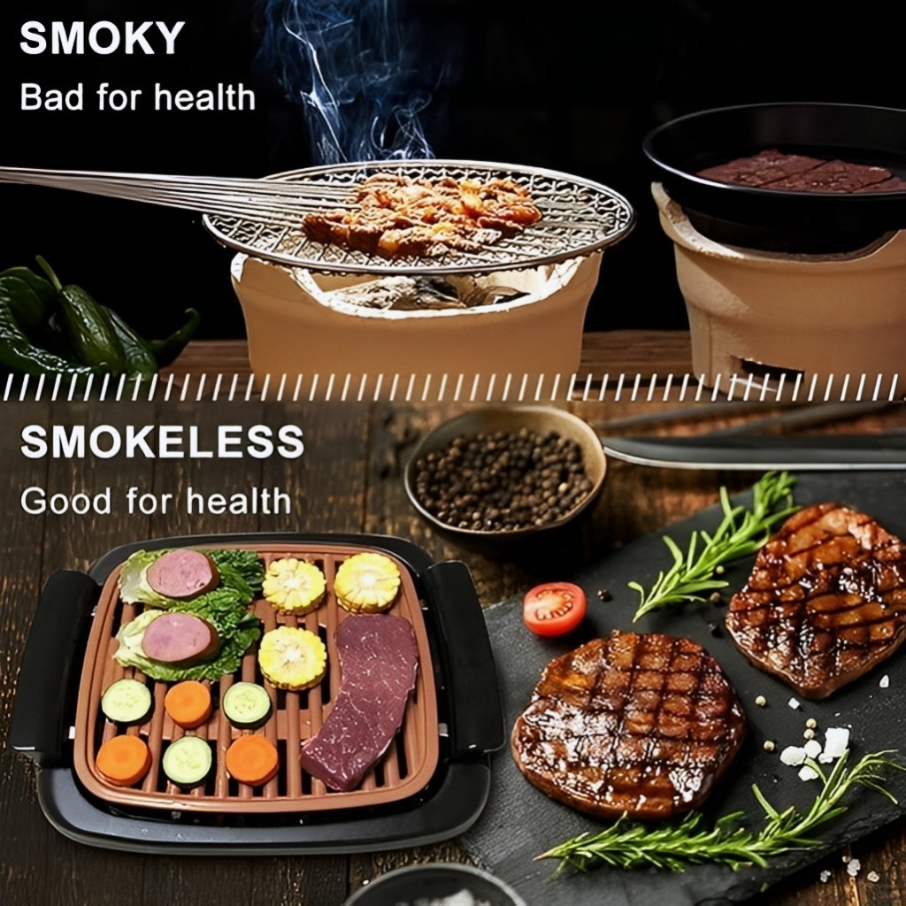 Churrasqueira Elétrica Grill 1000W 110V Portátil Ajustável Sem Fumaça