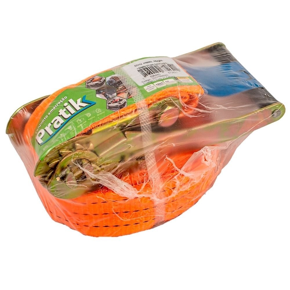 Cinta Catraca de Amarração Pratik Laranja 50mm 3T 9m Gancho J Importado