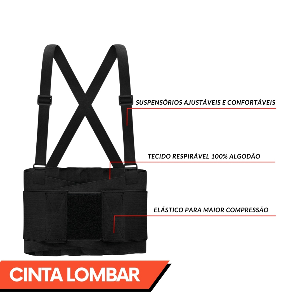 Cinta Ergonômica Reforçada Proteção Coluna Lombar Abdominal Obras Construção Civil Epi
