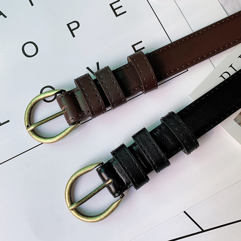 Cinto De Fivela De Metal Fino Para Mulheres Cintura Minimalista Ajustável Uso No Campus Moda Presente Café Preto