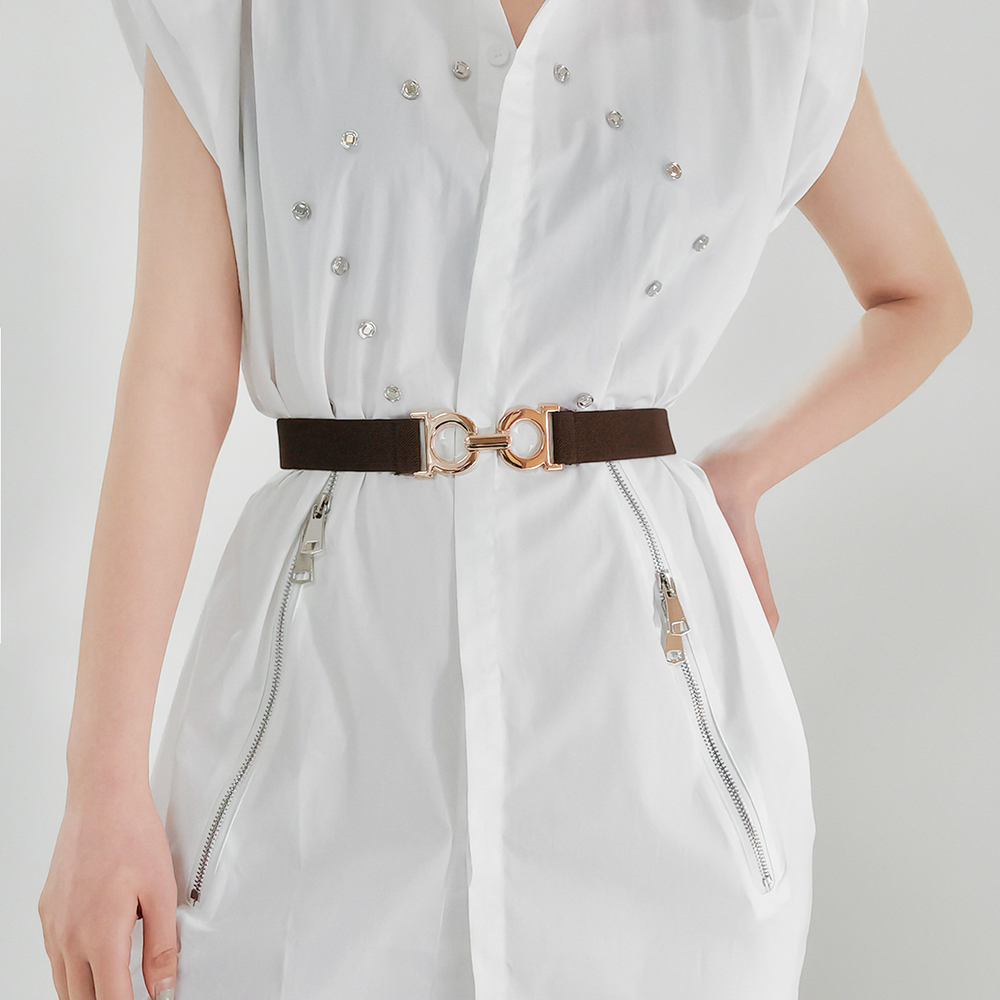 Cinto Elástico Feminino Estilo Coreano De Cintura Dourado Para Vestidos