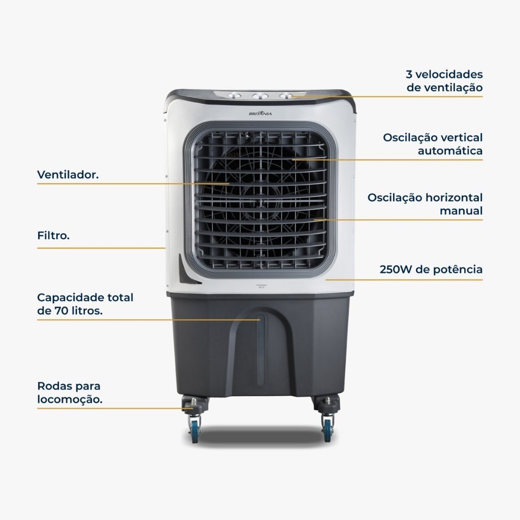 Climatizador de Ar Britânia BCL70 PRO, 70 Litros, Motor 250W Muito Potente 4 em 1 Resistente Grande