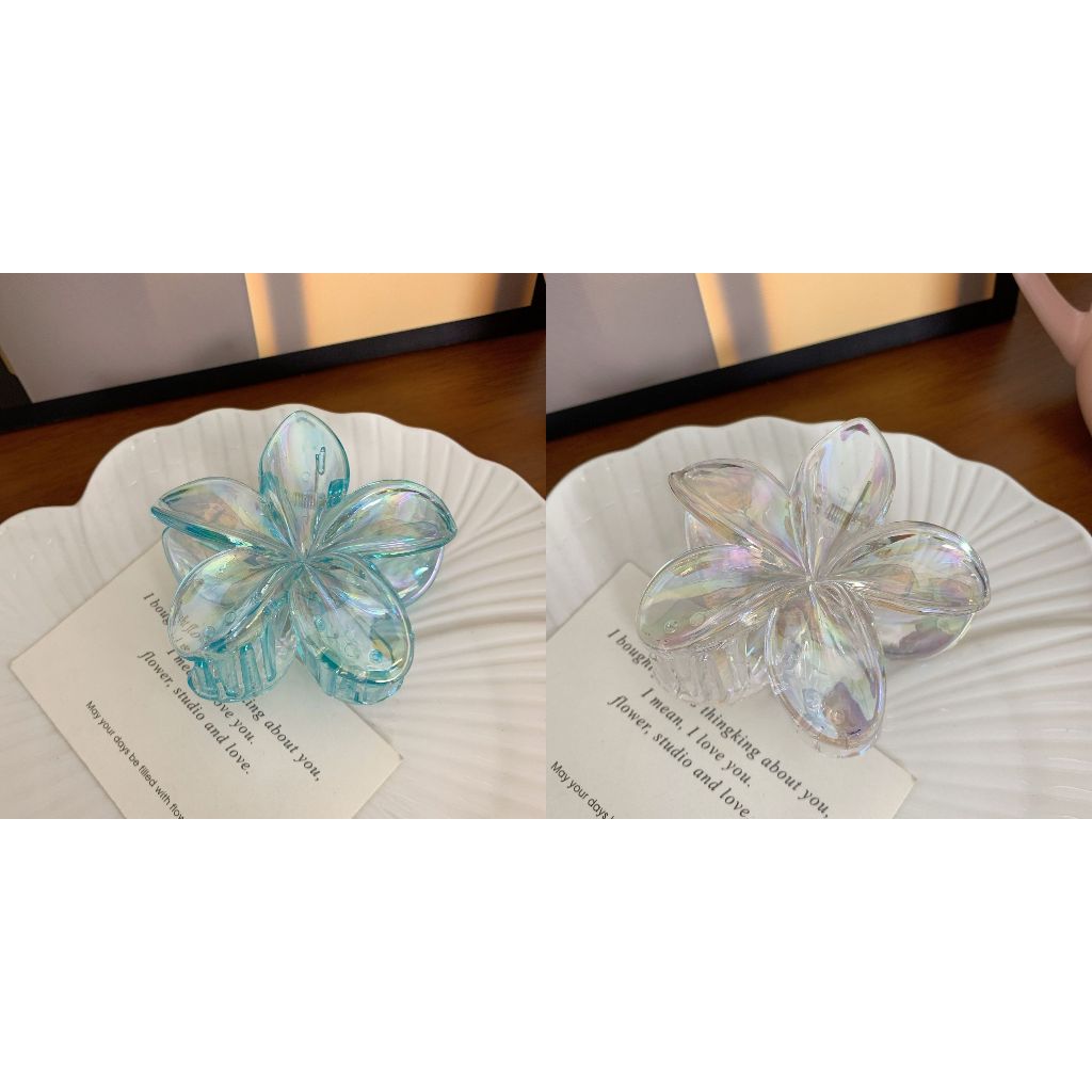 Clipe de Cabelo Transparente de Frangipani - Acessório Colorido de Flor para Férias na Praia Feminina