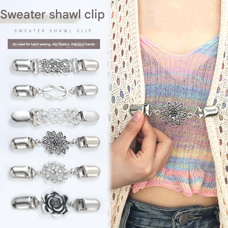 Clipes de xale vintage, botões estilosos para cardigã, pino de colarinho universal de metal feminino, broche